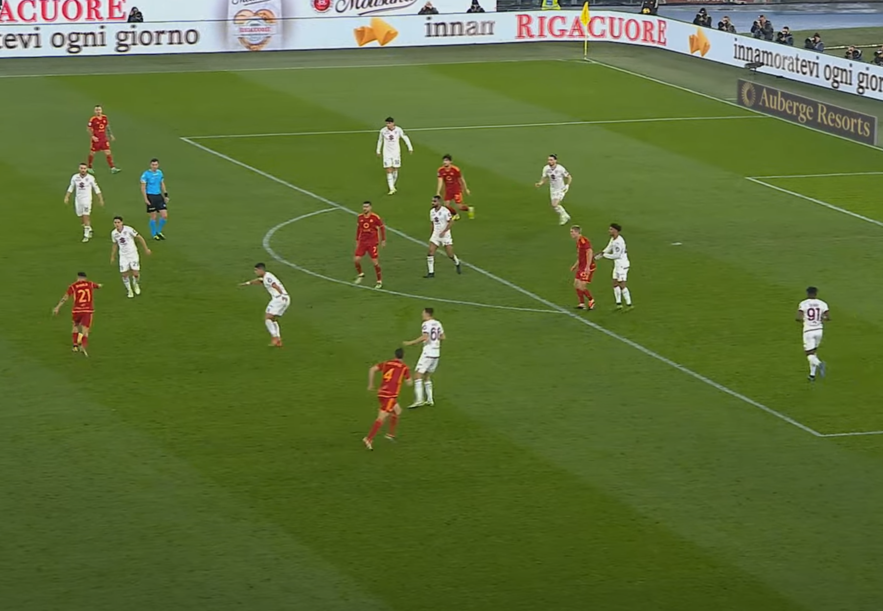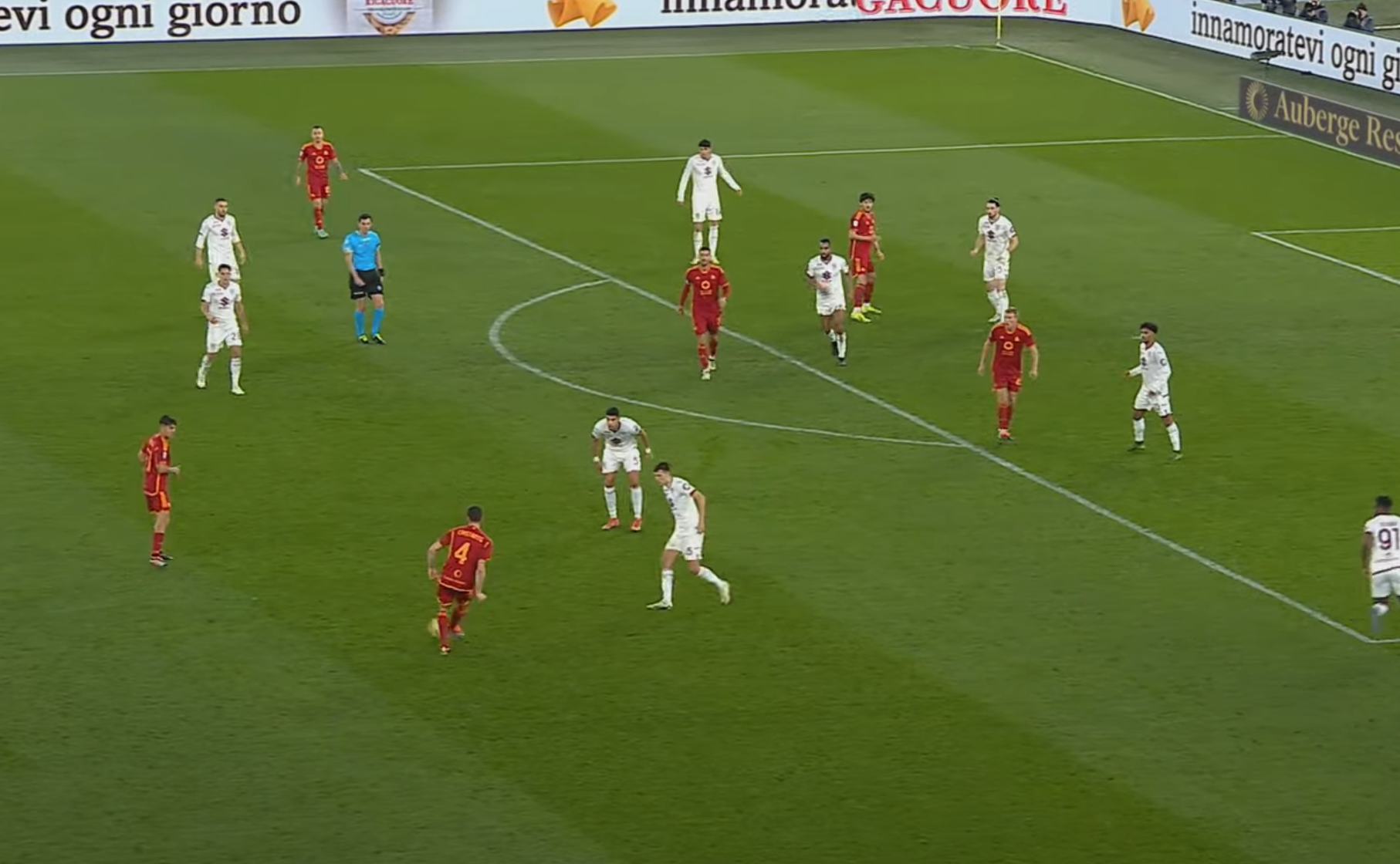 In avvio di ripresa la Roma si riporta in avanti grazie a Dybala. L'argentino riceve da Cristante fuori area ed è troppo isolato.