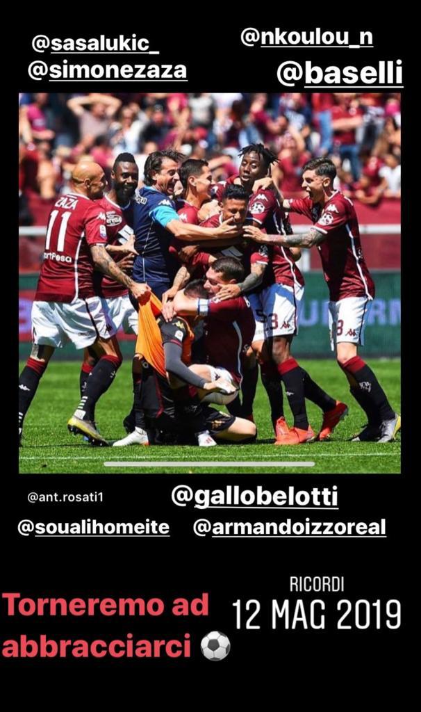 Sono passati 365 giorni da quella meravigliosa rovesciata di Belotti che per il secondo anno consecutivo punì il Sassuolo. Il 3-2 della passata stagione è stato un match memorabile e i giocatori granata non se lo dimenticano di sicuro. Su Instagram, infatti, Antonio Rosati ha colto al volo la ricorrenza per caricare il gruppo. "Torneremo ad abbracciarci" scrive l'estremo difensore del Torino, postando la foto dell'esultanza di squadra dopo la meravigliosa rete del Gallo che decise il match in favore dei granata. Il gruppo ora ha ripreso gli allenamenti e dal 18 potranno iniziare anche quelli di squadra. Oggi al Filadelfia si è rivisto anche Armando Izzo.