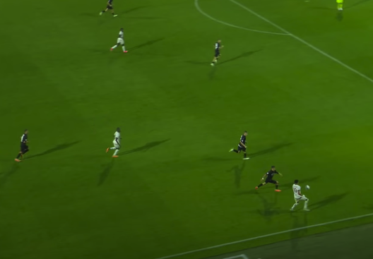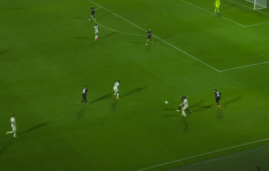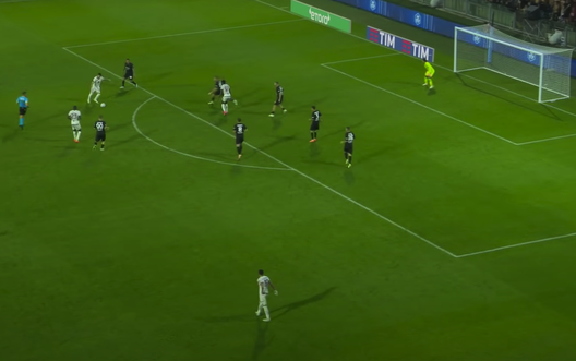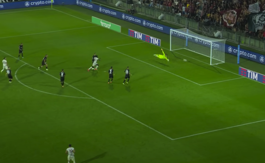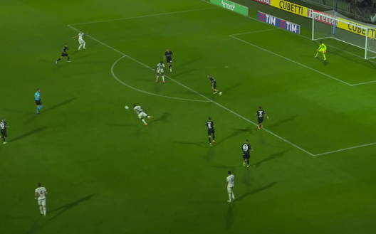 Il passaggio non è precisissimo, ma Mazzocchi non riesce a trattenere il pallone, anzi lo sporca quel poco che basta per apparecchiare la sfera a Radonjic. Il serbo così può prendere la mira dal limite.