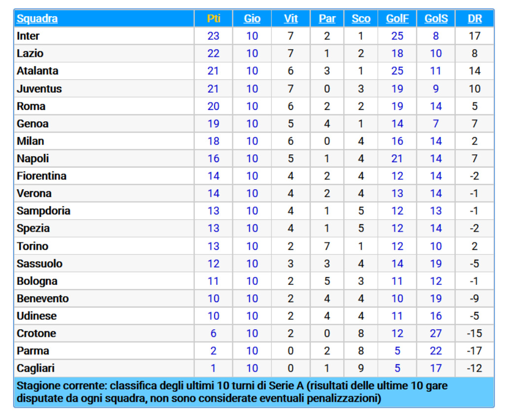 ULTIME 10 GARE - Osservando la classifica delle ultime 10 partite di tutte le squadre di Serie A, il Torino occupa la tredicesima posizione con 13 punti raccolti: 2 vittorie, 7 pareggi e 1 sconfitta è stato il bottino dei granata. Dall'arrivo di Nicola sono stati 7 i punti raccolti dai granata in 5 partite (4 pareggi con Benevento, Fiorentina, Atalanta, Genoa e 1 vittoria l'ultima giornata con il Cagliari): il focolaio di Covid esploso all'interno della squadra si può dire abbia fermato la crescita di questa squadra che - tra le altre cose - aveva appena ritrovato Sanabria che dal suo arrivo nel mercato di gennaio non era riuscito ancora a disputare un allenamento al Filadeflia proprio a causa della sua positività al Covid.