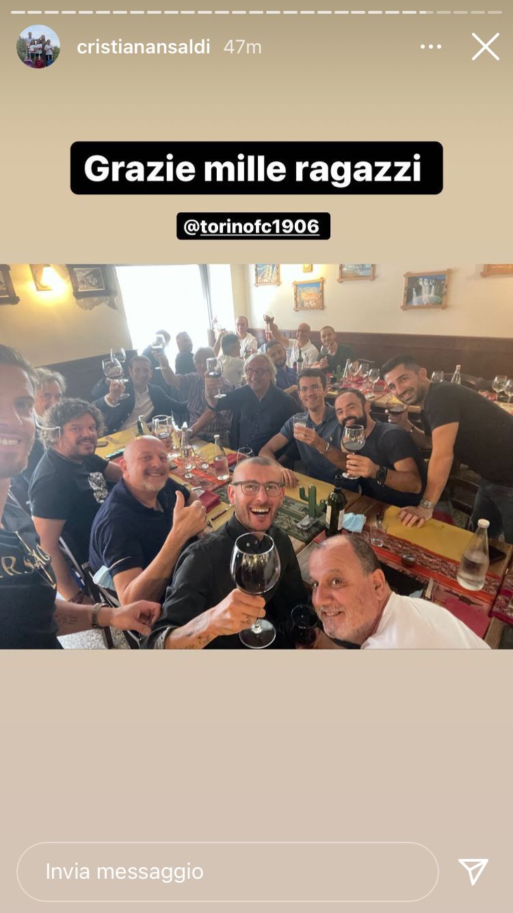 Cristian Ansaldi compie oggi 35 anni. L'esterno di Rosario ha deciso di festeggiare il suo compleanno insieme ai suoi compagni di squadra, compresi quelli nuovi. Ma all'appello non può di certo mancare Ivan Juric con il suo staff. L'argentino ha scattato delle foto che ritraggono tutti i presente attorno al tavolo di un ristorante argentino in zona Quadrilatero Romano per festeggiare il numero 15 granata. Dunque, altro momento di svago per i granata dopo l'allenamento mattutino e la domenica libera concessa alla squadra dal tecnico croato.
