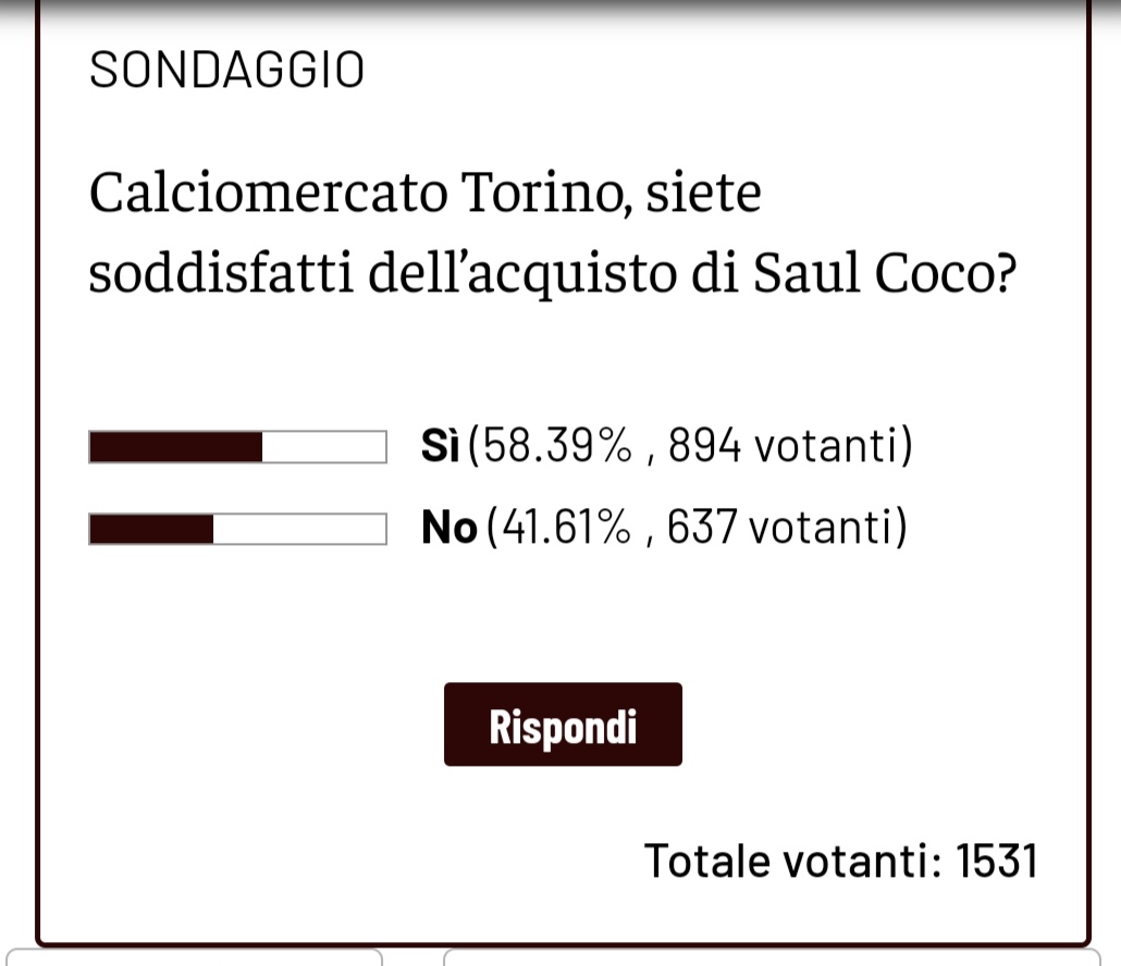 I risultati del sondaggio di Toro News su Saul Coco