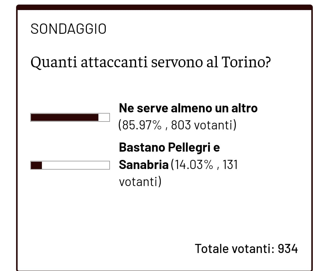 Secondo la stragrande maggioranza dei votanti Sanabria e Pellegri non bastano in avanti: c'è bisogno di un'altra punta per sostituire Belotti