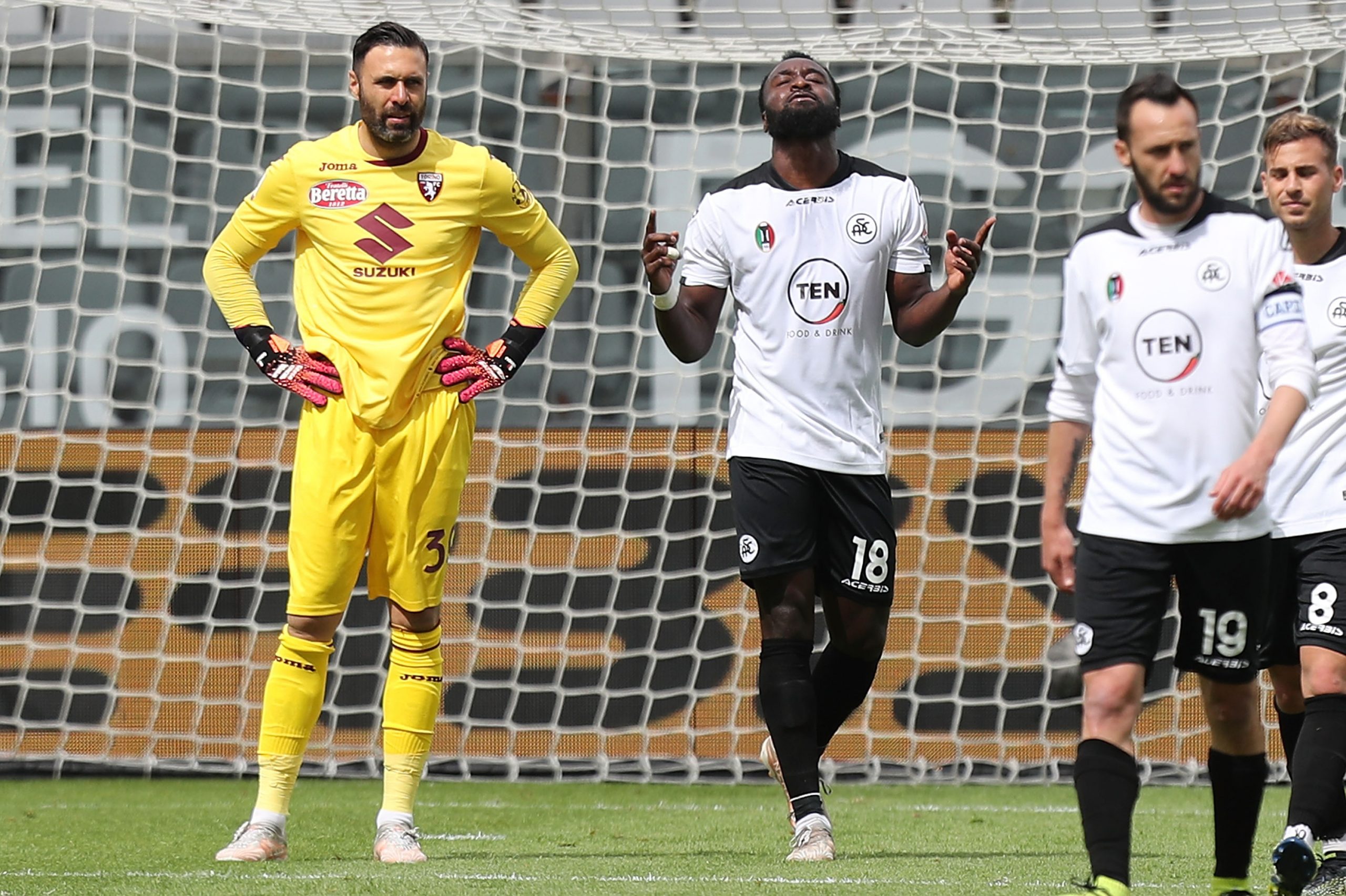 AL 90' - Dopo un primo tempo letteralmente da incubo, il secondo tempo del Torino comincia con un cambio tattico: fuori Vojvoda e dentro Verdi, con i granata che si posizionano in campo con un 4-4-2 con Izzo terzino destro e con Verdi e Lukic sugli esterni. Il canovaccio del match però non cambia, con la squadra di Nicola che fatica a costruire trame di gioco pericolose e subisce le ripartenze dei padroni di casa. Al 49' arriva infatti la prima folata offensiva della ripresa dello Spezia, con Saponara che supera Izzo e serve in profondità Nzola: l'attaccante di Italiano però perde un tempo di gioco con lo stop e calcia addosso a Sirigu da ottima posizione. Tre minuti più tardi l'episodio che riapre il match: calcione di Ferrer a Bremer e calcio di rigore per il Torino. Dal dischetto va Belotti, che spiazza Zoet e fa 2-1. Nicola allora cambia ancora: dentro Singo, Buongiorno e Zaza, fuori Izzo, Lukic e Sanabria e ritorno al 3-5-2. I cambi sembrano dare nuove forze a Belotti e compagni, che provano a riversarsi nella metà campo dello Spezia, ma senza dare mai l'impressione di poter davvero sovvertire l'esito del match. Il tentativo di forcing del Torino non sortisce l'effetto sperato e anzi al 74' la squadra di casa riesce a dare la mazzata finale ai granata, ancora una volta con Nzola. Bremer causa in modo ingenuo una punizione facendo fallo su Saponara. Cross di Marchizza e volée da dentro l'area di rigore dell'attaccante ex Trapani, che in perfetta solitudine batte Sirigu e fa 3-1. Il terzo gol subito è una vera e propria doccia ghiacciata per Belotti e compagni, che staccano definitivamente e al 84' subiscono persino il gol del 4-1 da Erlic di testa. Finisce così al Picco: la partita che il Torino poteva solo vincere si trasforma nella seconda figuraccia consecutiva per la squadra di Nicola. Ora la palla passa al Benevento, impegnato domani contro il Crotone già retrocesso, ma c'è la netta sensazione che ora per salvarsi il Torino dovrà necessariamente passare dall'ultimo scontro diretto contro i campani di domenica prossima.