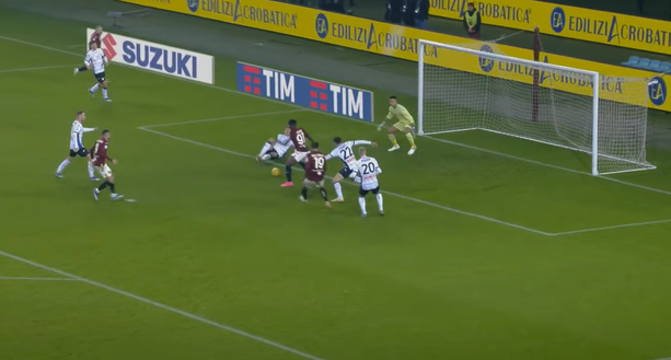 Il gol del vantaggio Toro nasce proprio da Vlasic. Il croato manda in profondità Bellanova, il cui cross però è troppo lungo. I granata recuperano subito palla sull'altro versante e Ilic manda in profondità proprio Vlasic.
