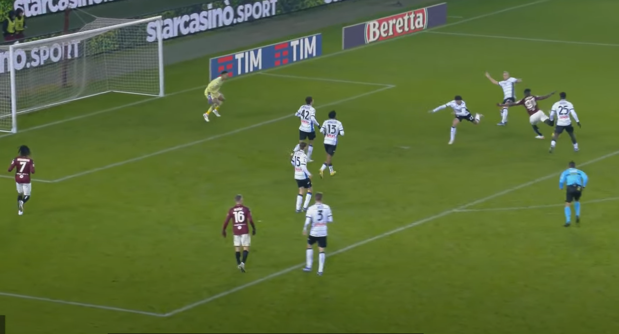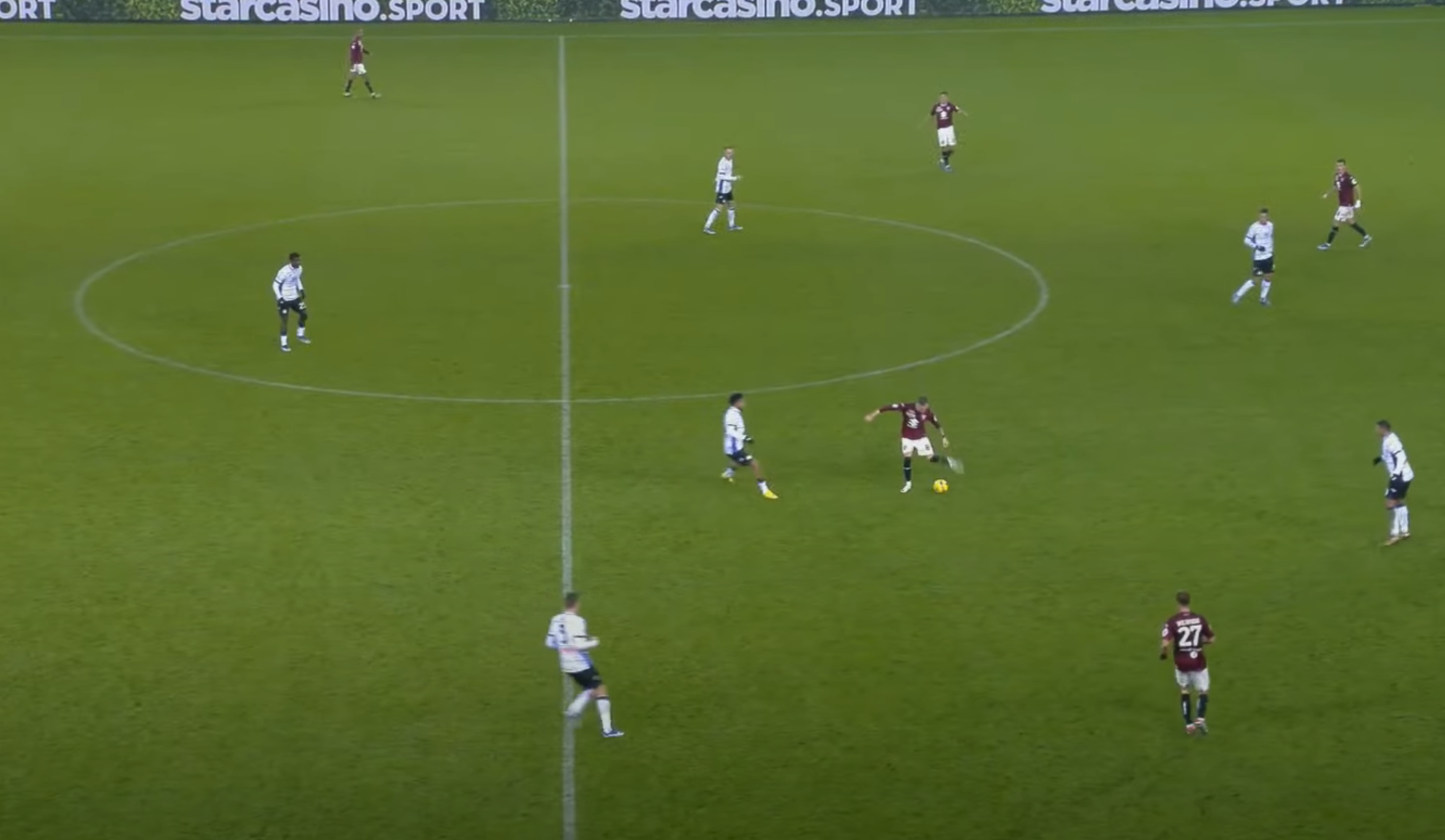 L'ex Parma e Inter di tacco serve subito di prima intenzione Vlasic che ha tanto spazio davanti a sé.