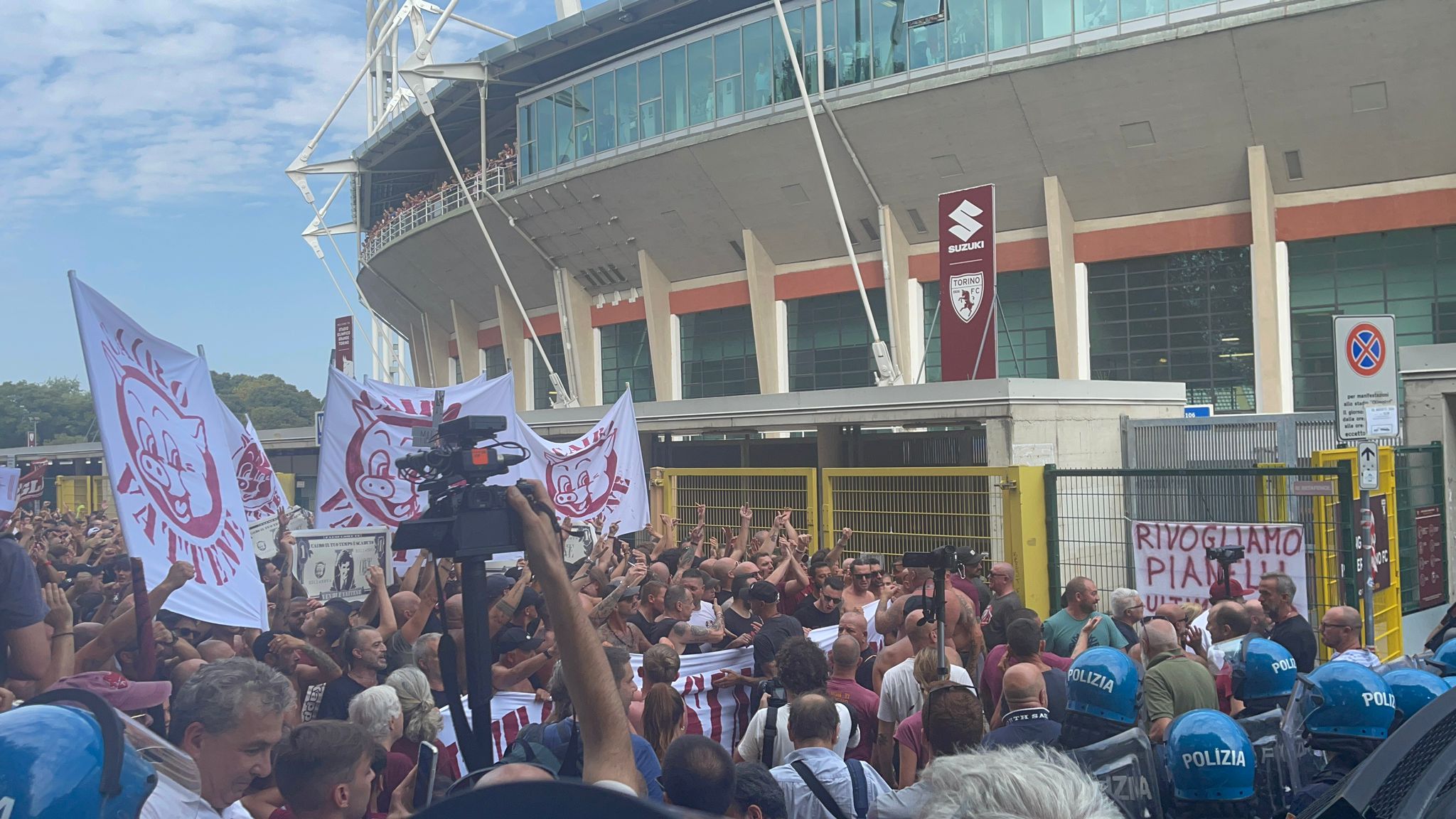 17.08 - A poco più di un'ora dalla partita, prosegue la contestazione. Alcune immagini dal Grande Torino in attesa dell'avvicinamento alla partita