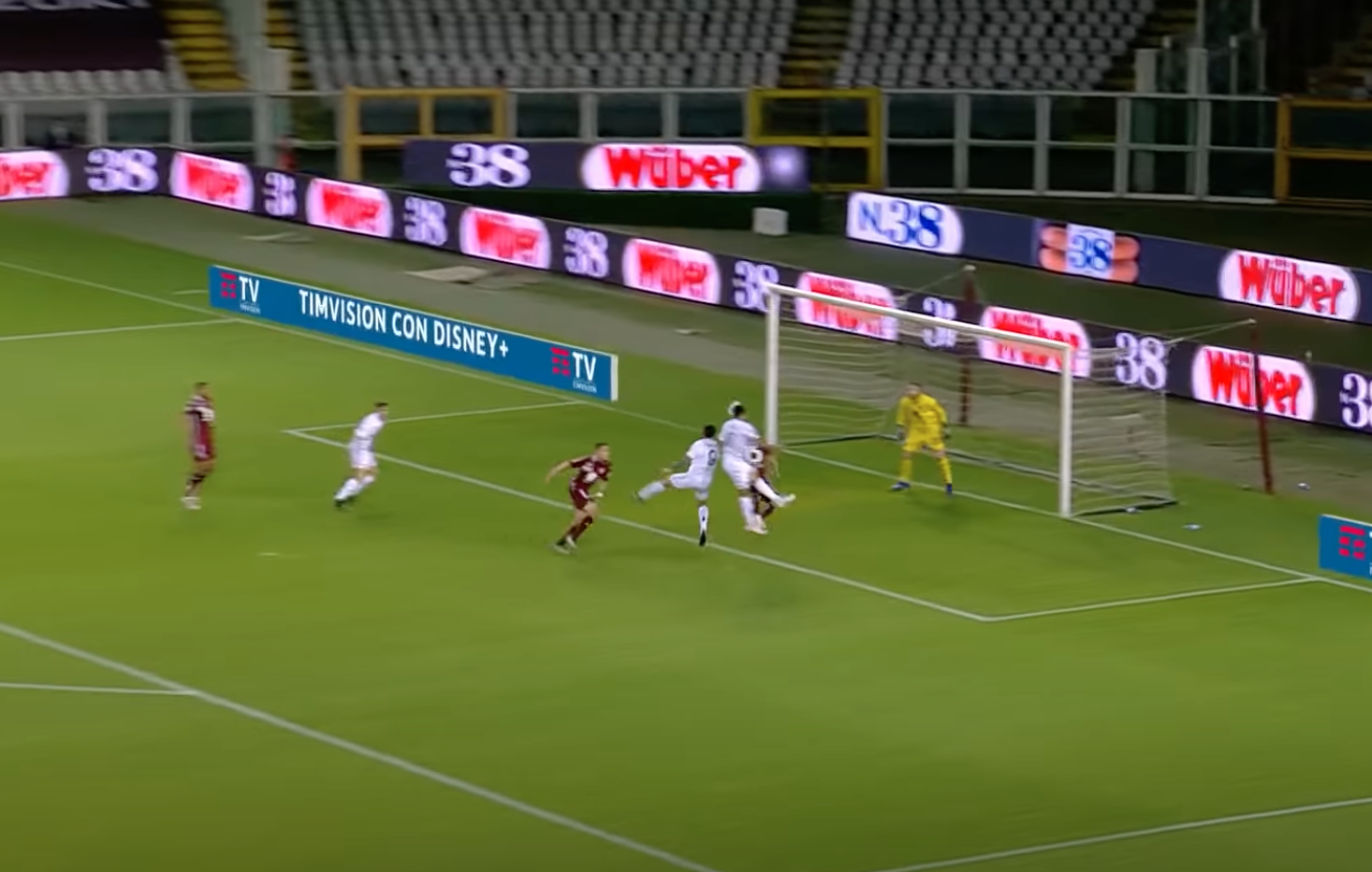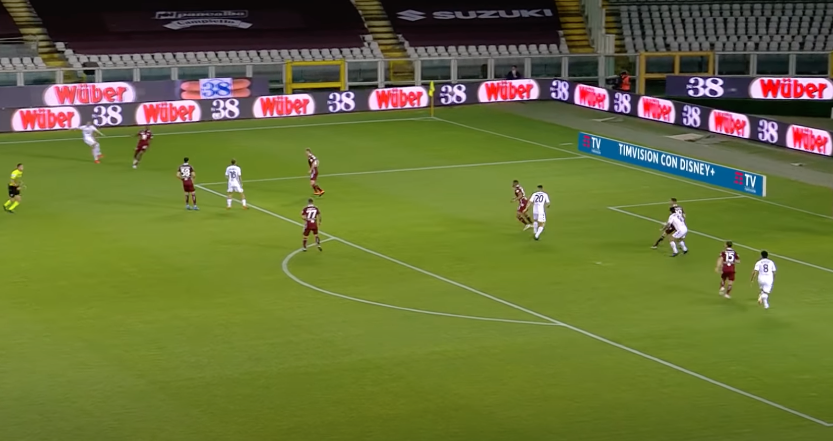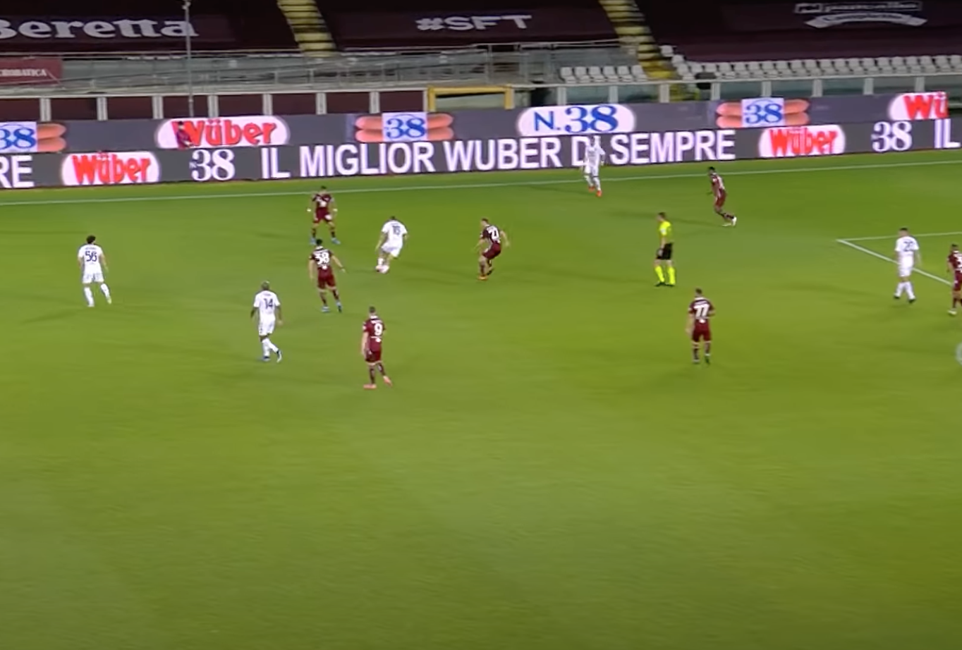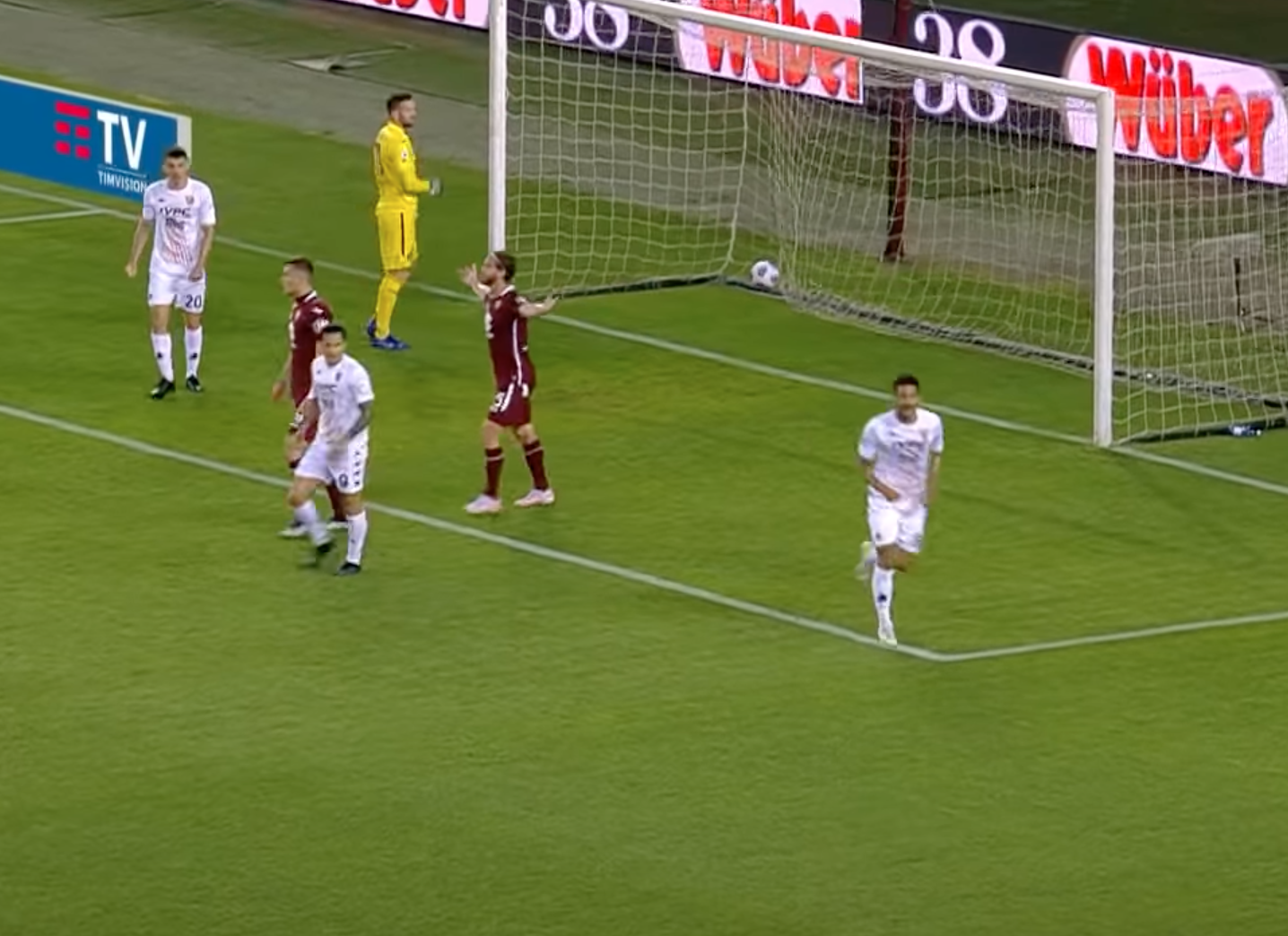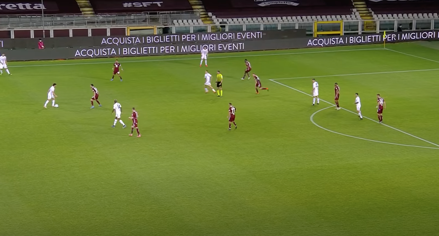 Sul cross di Letizia si avventa Tello, che vola di testa sopra ad Ansaldi, troppo passivo in questa situazione. Azione comunque ben costruita dai giallorossi. L'unico errore grave granata è l'aver concesso con troppa facilità il cross a Letizia.