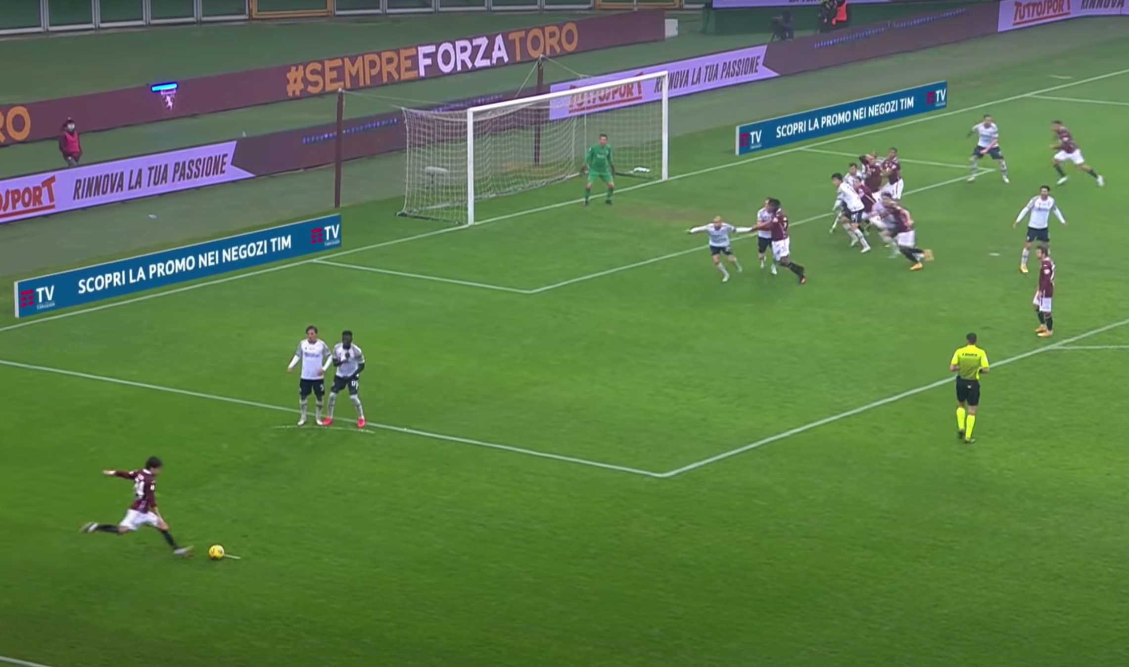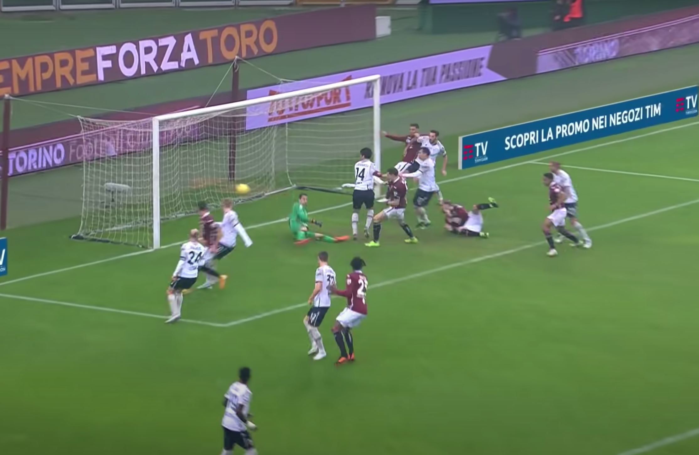 Verdi batte forte e tagliato in centro, la palla passa dalle parti di Lukic e Schouten, nessuno dei due - però - prova a staccare di testa e allora la sfera arriva davanti a Da Costa. Il portiere felsineo, sorpreso, prova a intervenire, ma si butta da solo la palla in porta. Il gol è attribuito a Verdi perchè, secondo le regole, il suo pallone era indirizzato verso la porta, ma è evidentissimo che, all'atto pratico, ci sono più "meriti" del portiere rossoblù che dell'attaccante granata.