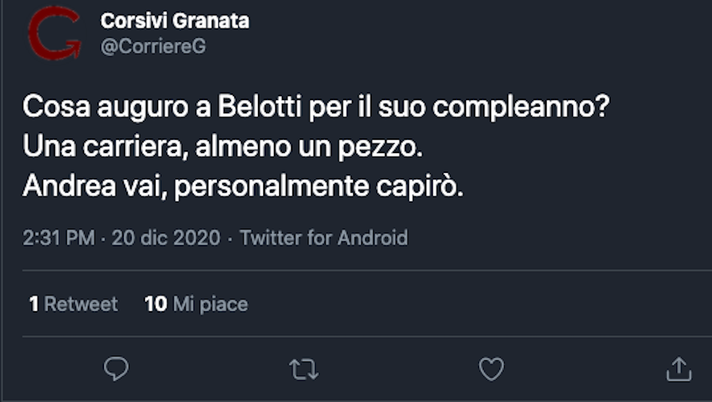 Torino-Bologna 1-1, le reazioni social: “Andrea vai, personalmente capirò”
