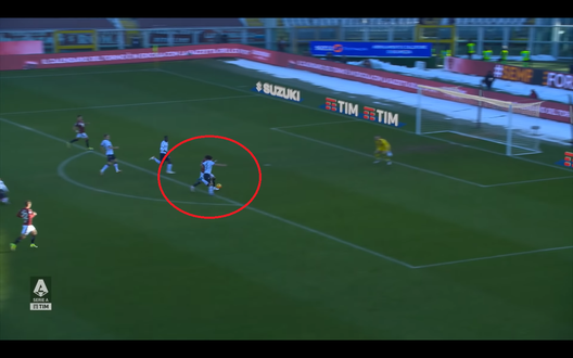 Il numero 10 del Torino arrivato sulla trequarti offensiva decide di servire il suo compagno che è bravo ad approfittare dello scivolone involontario del difensore del Bologna Medel (Immagine 3).