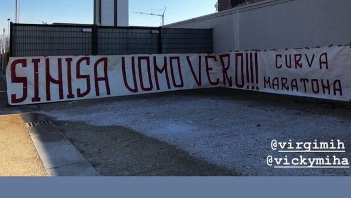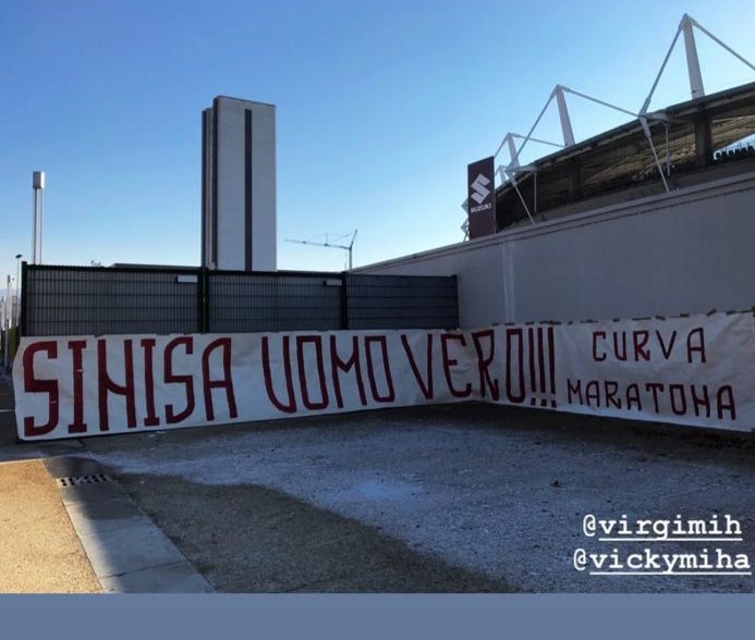 14.40 Fuori dall'Olimpico appare uno striscione firmato da La Maratona per Mihajlovic: "Sinisa uomo vero"