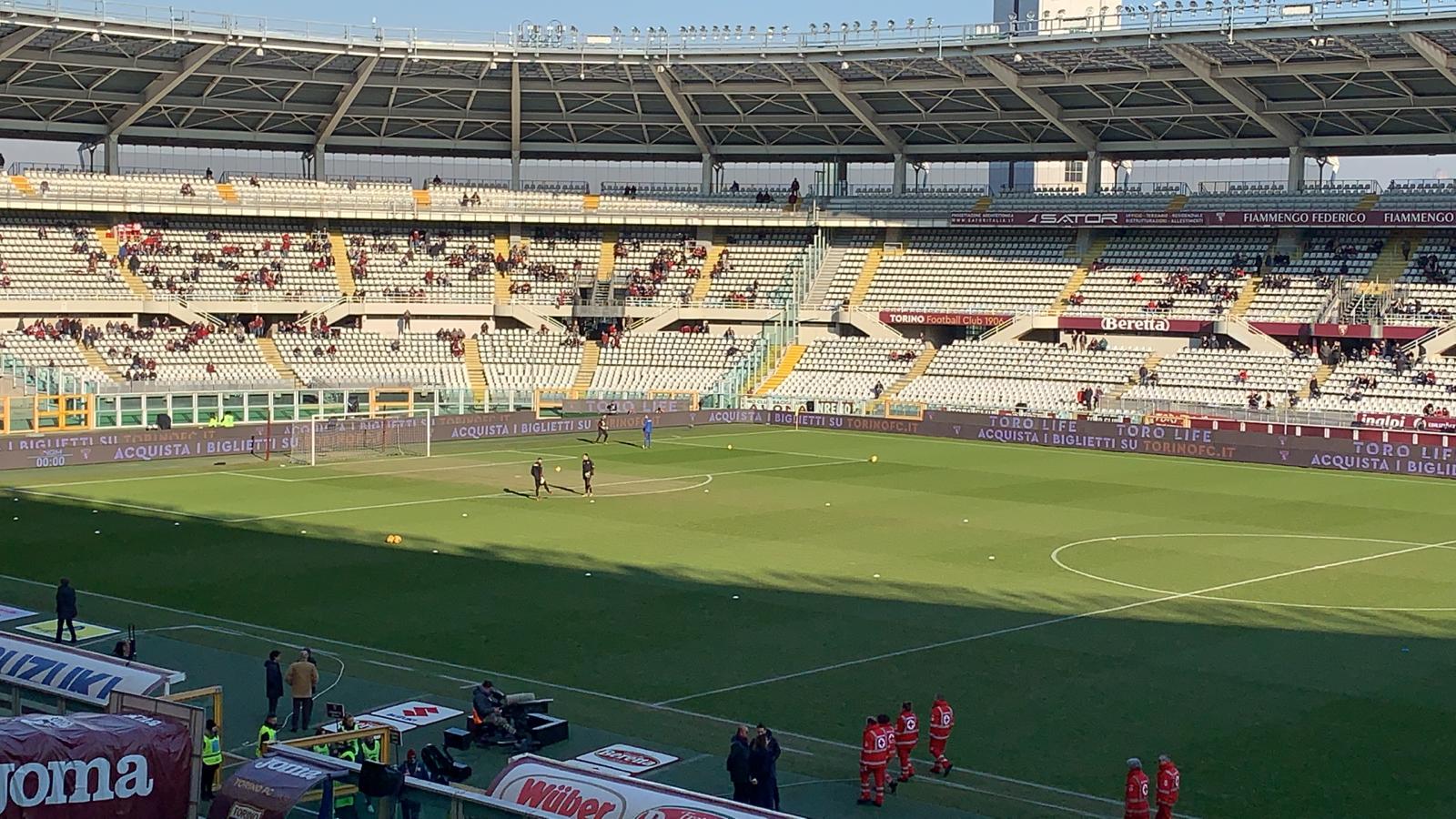 14.55 Lo speaker del Torino annuncia le formazioni delle due squadre