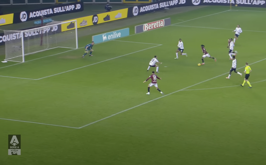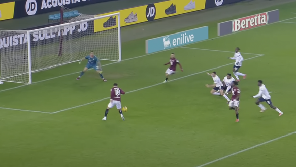 Nella ripresa il Toro raddoppia dopo aver avuto tante occasioni e dopo un gol annullato. Questa volta la verticalizzazione è di Maripan, che cerca Karamoh con un lancio lungo.