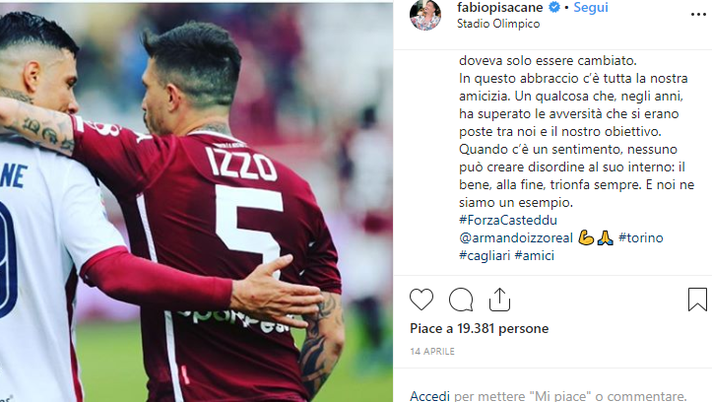 IL MESSAGGIO - "In questo abbraccio sono contenute tutte le difficoltà che ci siamo messi alle spalle" scriveva su Instagram Pisacane, a pochi minuti dal triplice fischio di Torino-Cagliari del 14 aprile 2019. Una fotografia che non ha bisogno di spiegazioni: Izzo con addosso la 19 di Pisacane ed il difensore rossoblu con - a sua volta - la numero 5 granata sulle spalle. Un abbraccio che esprime al meglio i valori più puri del calcio, perché Izzo e Pisacane sono la prova che "quando c’è un sentimento il bene, alla fine, trionfa sempre". Il destino non gli ha regalato nulla, nei loro occhi brilla il fuoco del carattere di chi si è fatto da solo, in campo sono due guerrieri come lo sono stati nella loro adolescenza. Alla fine però hanno vinto loro e, come in tutte le favole, anche Izzo e Pisacane hanno avuto il loro lieto fine.