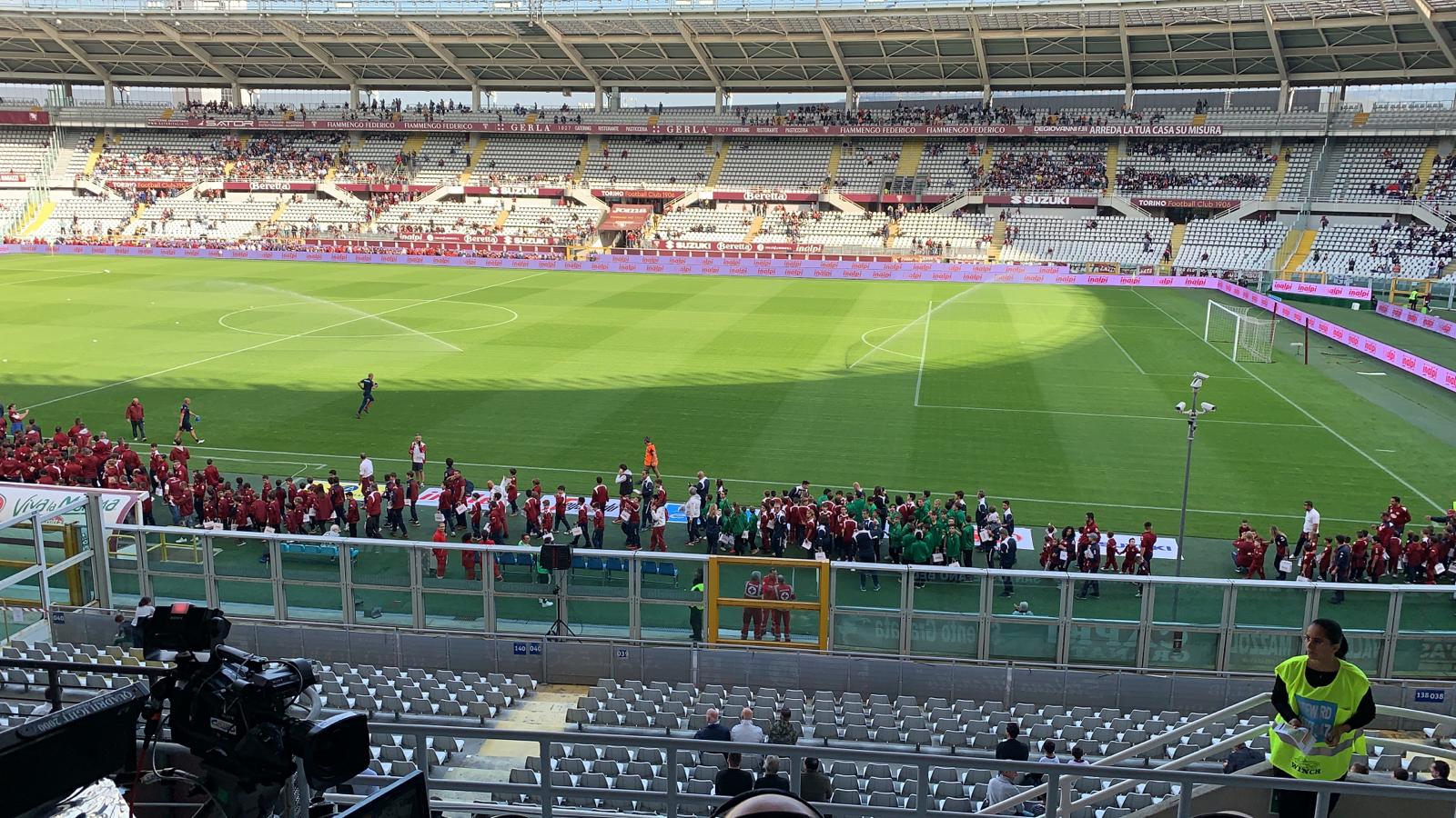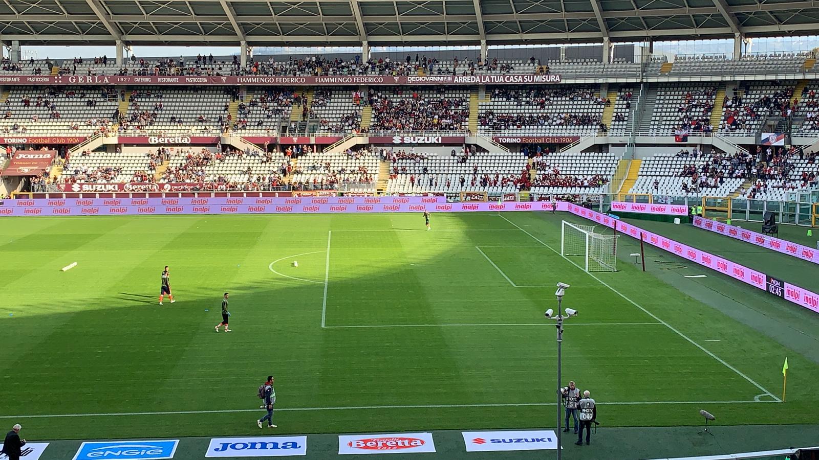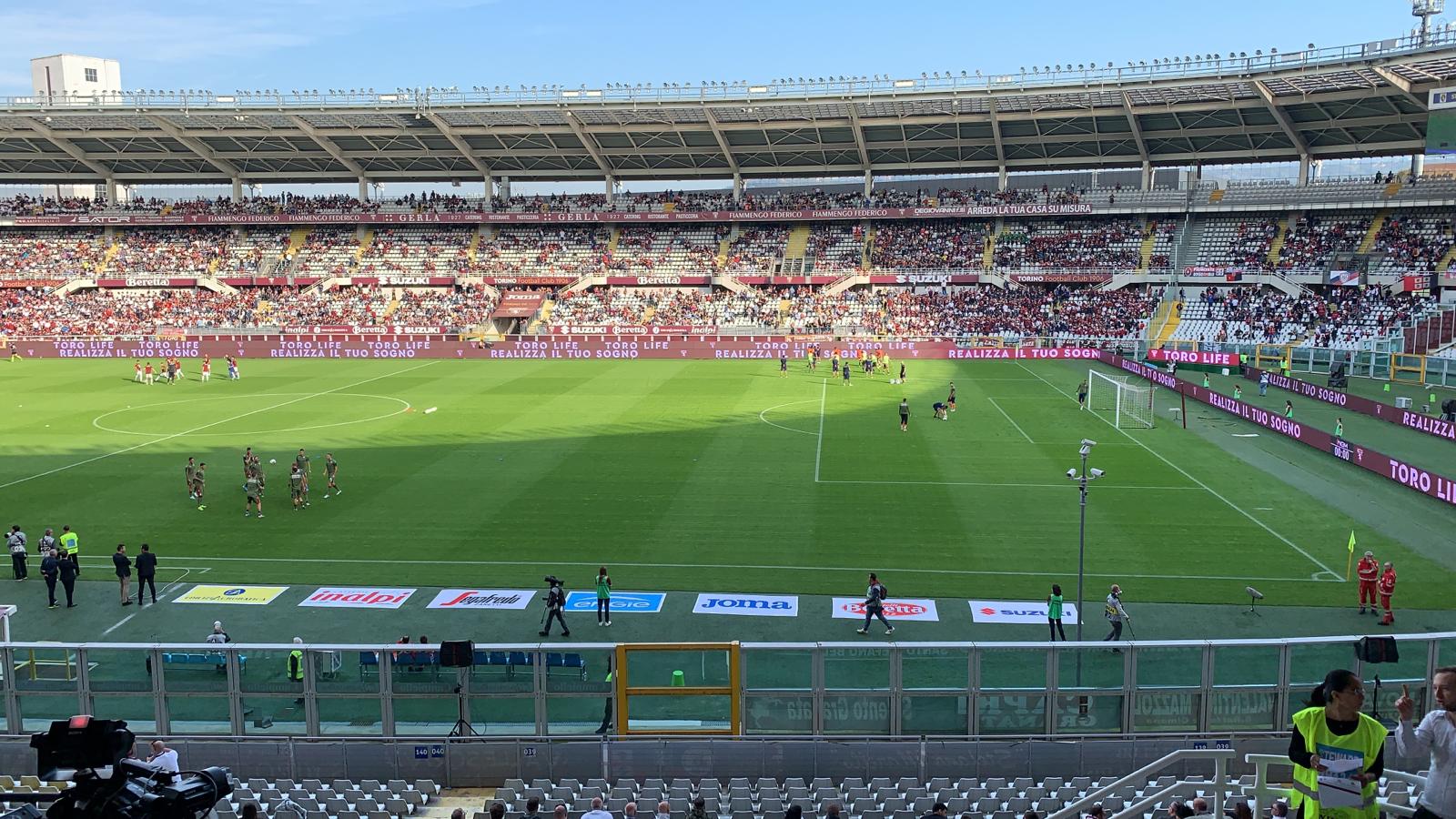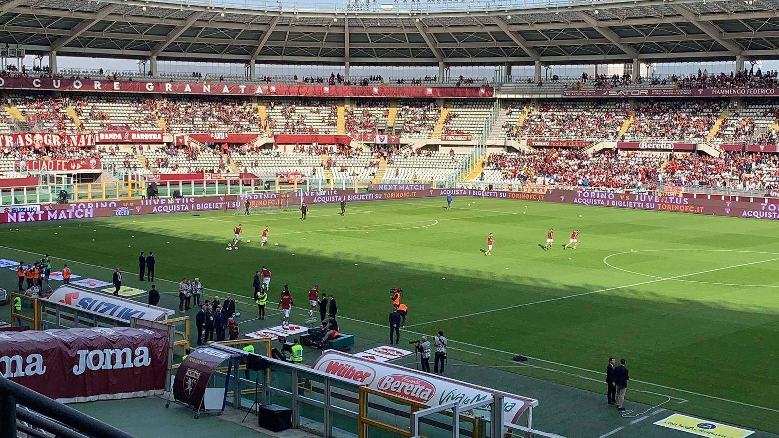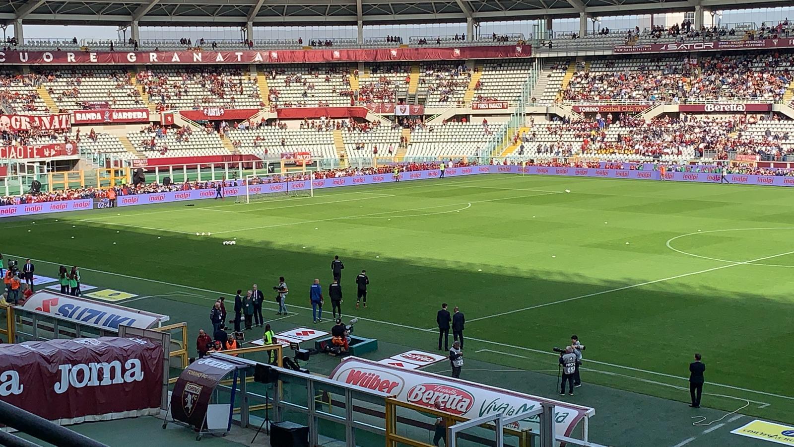13:30 Eccoci all'Olimpico Grande Torino, il clima è sereno, con il sole che riscalda il terreno di gioco.