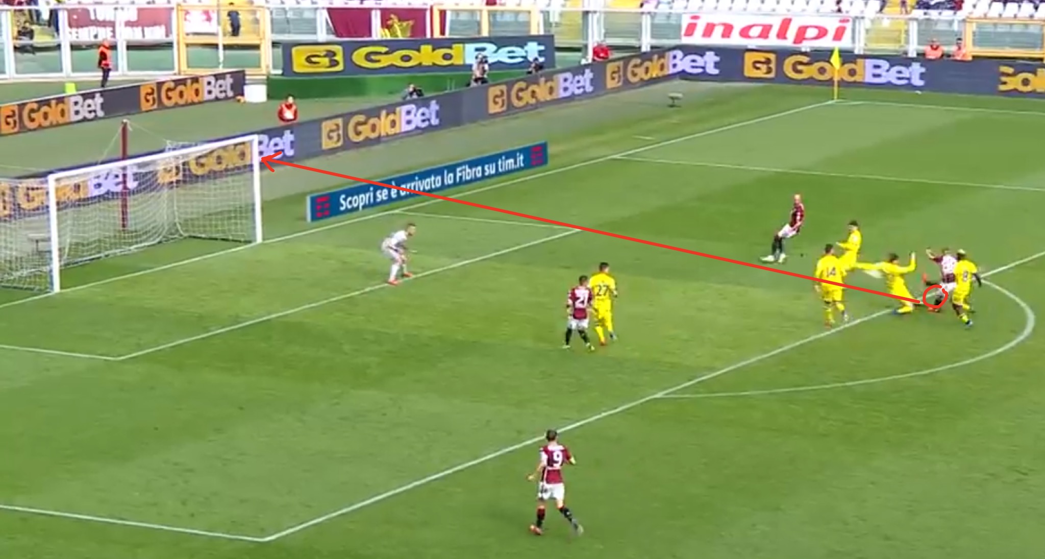Una volta agganciato il pallone dai piedi di Diousse, Rincon decide di fare tutto da solo. L'ex Genoa avanza palla al piede e dal limite va al tiro. La sua conclusione, nonostante fosse disturbato dai difensori avversari, s'insacca sotto il sette, dove nulla può Sorrentino. Il risultato per i piemontesi è in cassaforte.