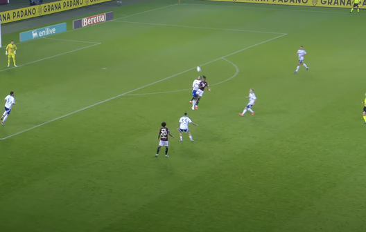 Il primo ad arrivare sulla sfera è Braunoder, che in difficoltà appoggia di testa ad Audero.