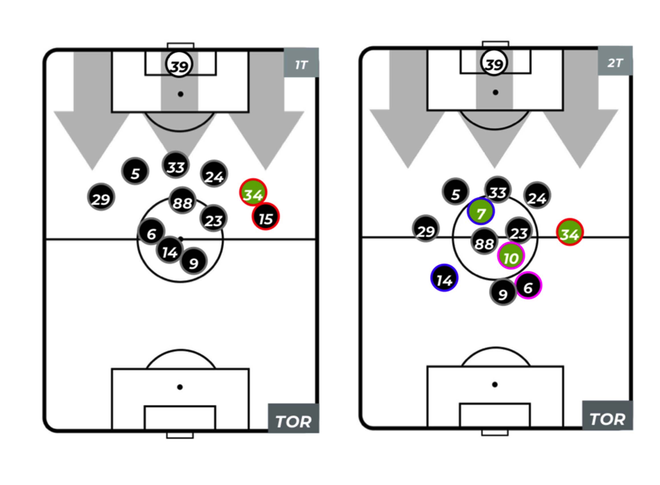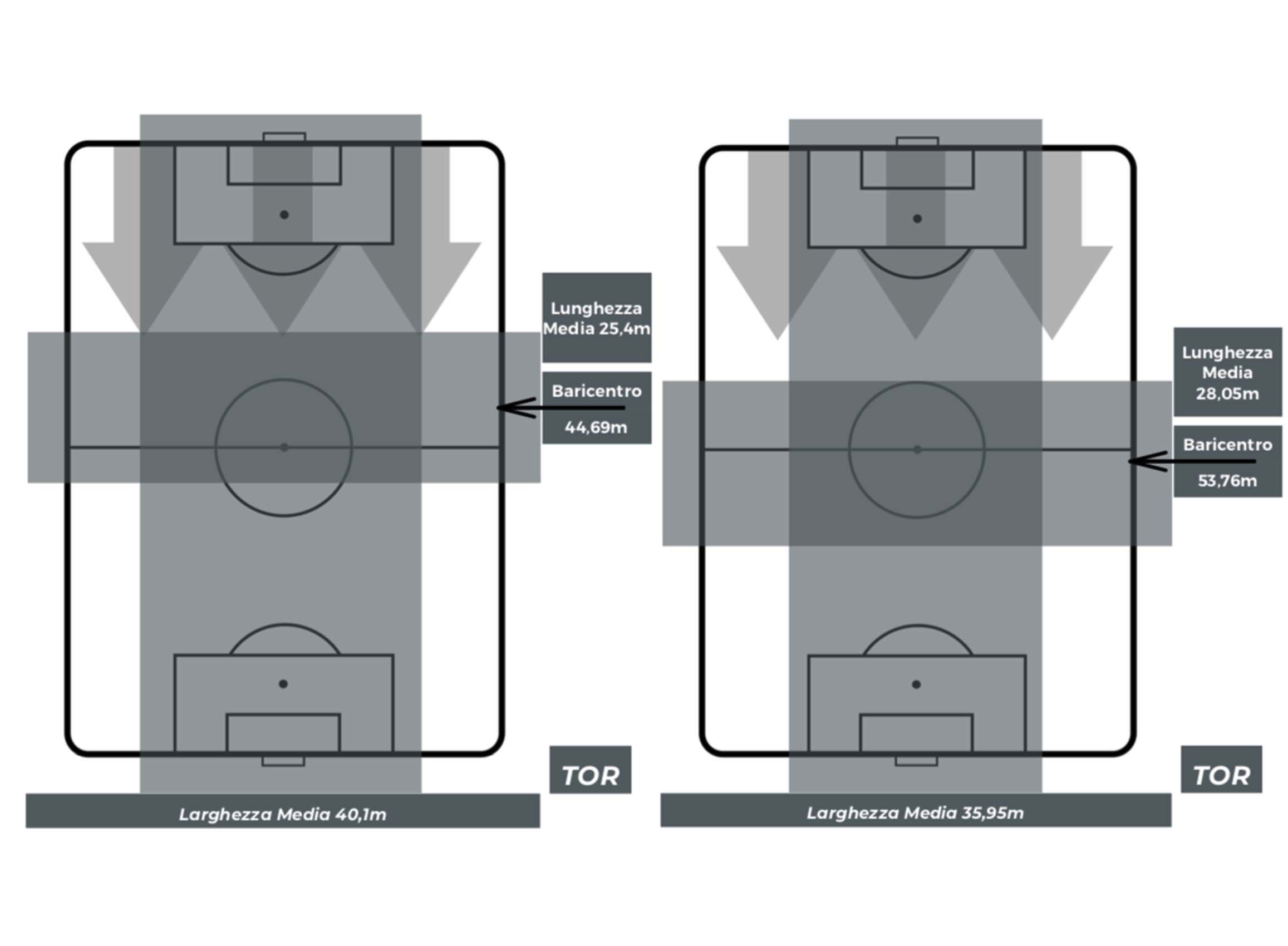 VARIAZIONI – Oltre alla maggiore determinazione con cui i granata sono tornati in campo, contro l’Inter, la marcia in più l’ha data quindi il passaggio al 3-4-3. Lo spostamento di Soriano da destra a sinistra e l’avanzamento sulla trequarti - prima dell'ingresso di Ljajic -, ha portato il baricentro della squadra, in media, 9 metri più avanti rispetto alla prima frazione. Anche Falque ha beneficiato di questo cambio, trovando più spazio tra le linee e allargando la propria posizione di partenza: il lancio illuminante del primo goal è arrivato proprio su uno dei classici movimenti in cui lo spagnolo ha ricevuto il pallone accentrandosi da destra.