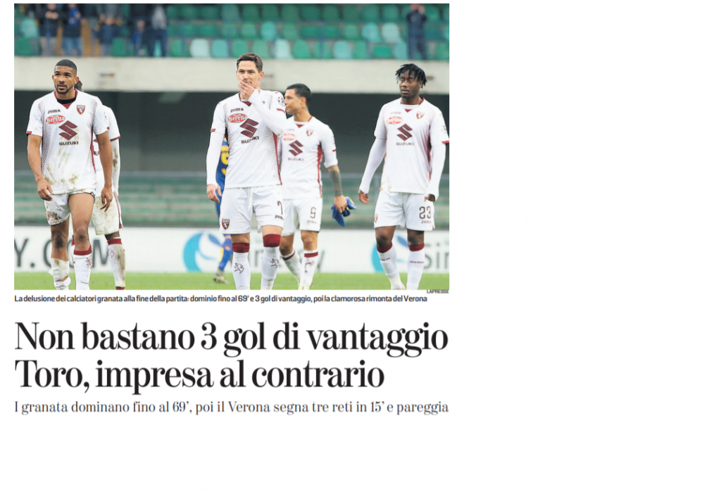 Giornata di riposo in casa Torino. Iago Falque è andato in Spagna per completare la riabilitazione (LEGGI QUI). Giornata di riflessione anche in casa granata dopo il rocambolesco 3 a 3 a Verona. I cambi hanno dato ragione a Juric (LEGGI QUI), mentre anche i numeri hanno decretato il pareggio (LEGGI QUI). Tra le fila del Torino ha spiccato il volo Alex Berenguer, autore di una super prestazione (LEGGI QUI). E' già iniziata, invece, la preparazione della Spal in vista della gara del "Grande Torino" di sabato alle 20.45 (LEGGI QUI).