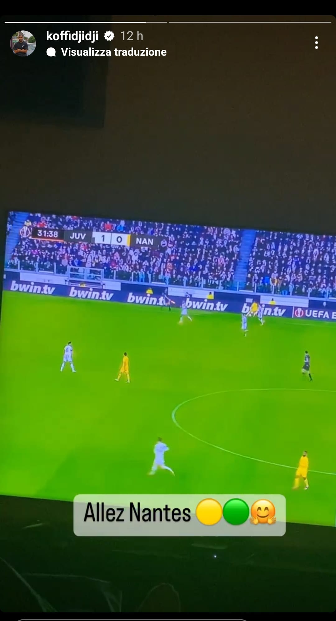 C'è un po' di granata nel pareggio del Nantes di ieri sera allo Stadium contro la Juventus nell'andata dei sedicesimi di finale di Europa League. Koffi Djidji quella maglia la conosce bene: in gialloverde il centrale difensivo ha svolto la trafila delle giovanili, facendo il suo esordio in Prima squadra nel 2012 e restandovi fino al 2018 prima di approdare al Torino. Tramite una storia Instagram, il centrale difensivo ha fatto i complimenti ai canarini per l'importante punto conquistato nel capoluogo piemontese, che li mette in una posizione di vantaggio in vista del ritorno in Bretagna. Anche se in carriera non ha giocato nel Nantes, Andreaw Gravillon ha seguito con interesse il match dei gialloverdi allo Stadium: è il 60' quando Ludovic Blas, classe 1997, conclude nel migliore dei modi un contropiede fulminante dei francesi siglando il gol del pareggio, e il nuovo acquisto del Torino non ha fatto mancare i suoi complimenti attraverso i social: "merci messieur", si legge nella storia Instagram di Gravillon.