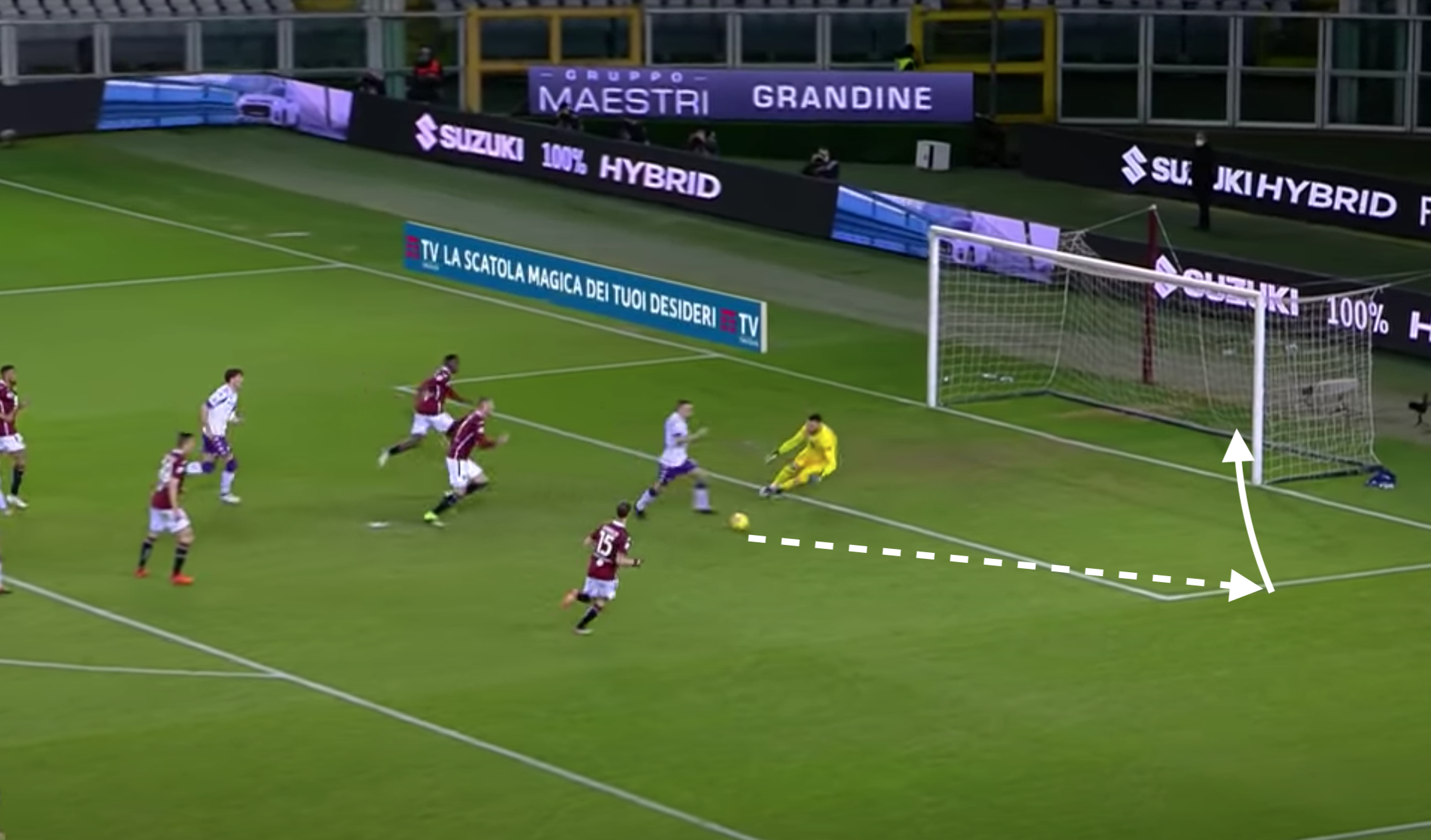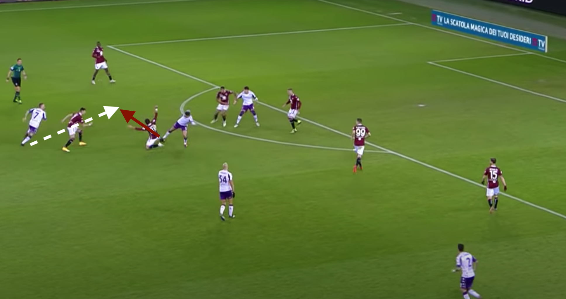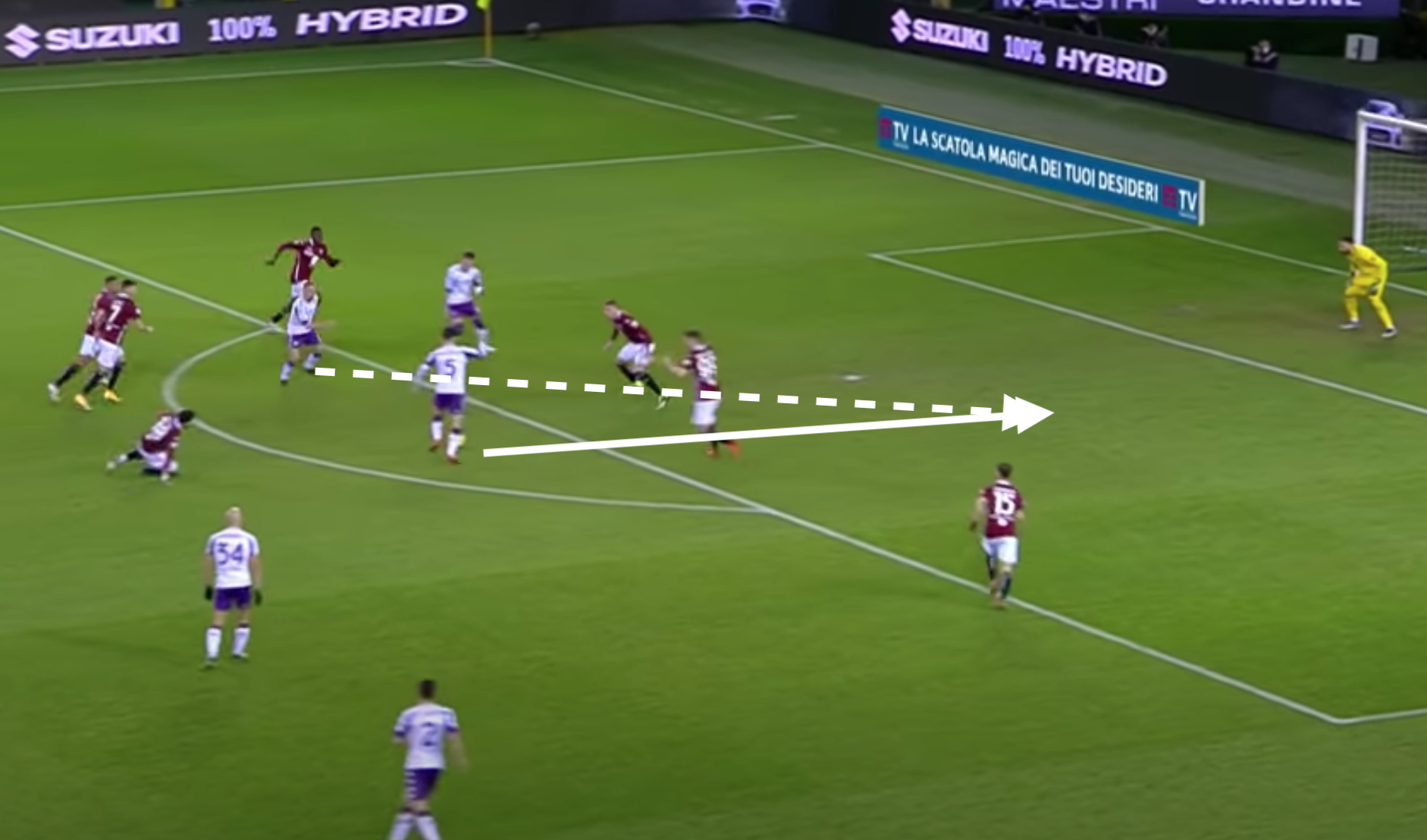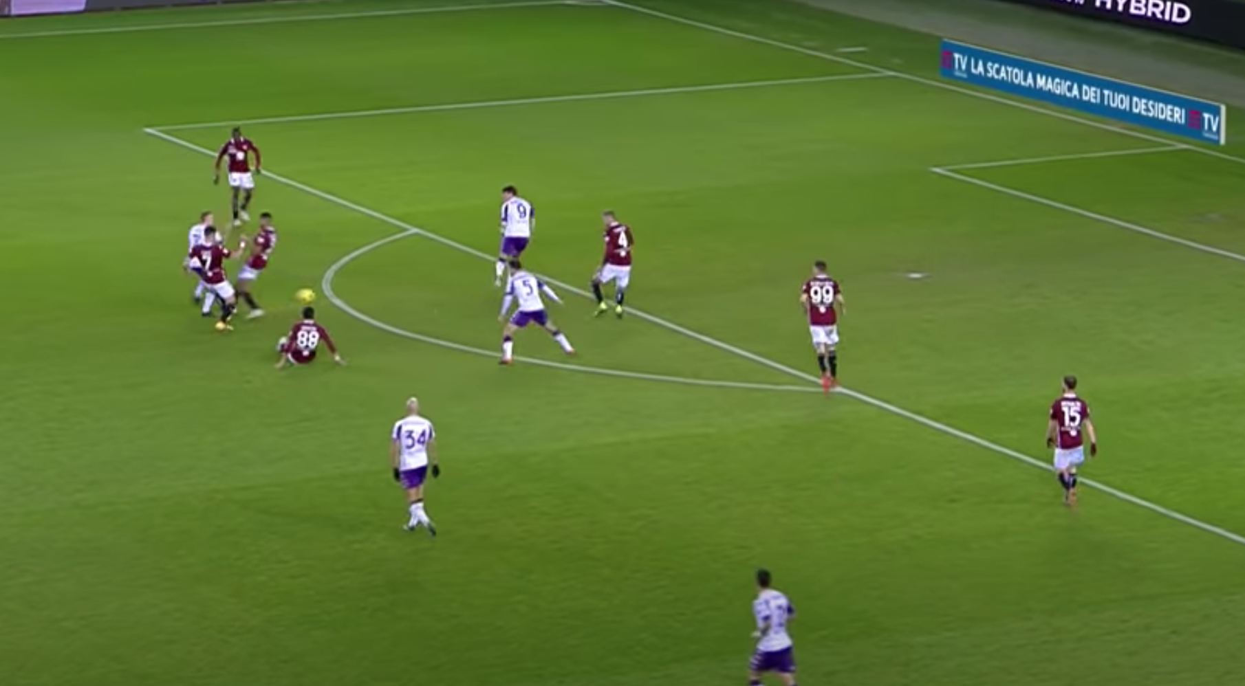 Su Ribery intervengono in due: sia Lukic che Bremer. L'uscita del brasiliano lascia un buco in mezzo con Valhovic che rimane tutto solo. Il francese di prima appoggia per Bonaventura, che è libero al limite dell'area.