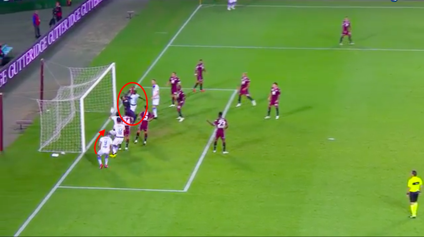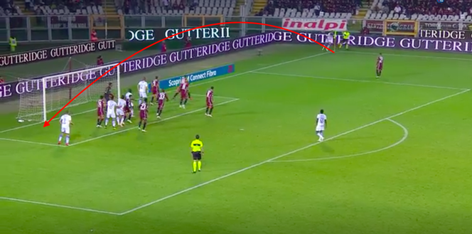Poi, inaspettatamente, il Frosinone riapre la sfida. Tutto nasce da un calcio d'angolo: i giocatori del Frosinone si schierano tutti a ridosso di Sirigu, creando una mischia davanti al portiere sardo. Il corner viene battuto teso e lungo verso il secondo palo.