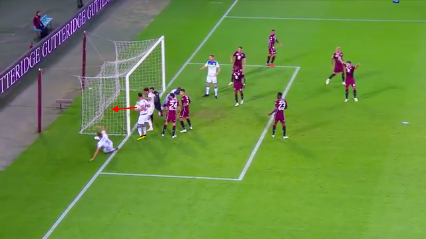 Sirigu prova ad intervenire, ma come ormai noto, Chibsah glielo impedisce cadendogli addosso e commettendo un fallo lampante, sfuggito solamente agli occhi di Pezzuto, assistenti e VAR.