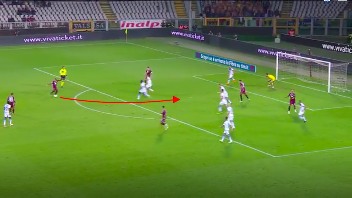 Infine il match winner, Alejandro Berenguer. L'azione nasce ancora dalla destra, questa volta dal subentrato Parigini. Il giovane classe 1996 è una furia e supera il diretto marcatore per l'ennesima volta. Parigini crossa verso Zaza che non riesce ad impattare per un soffio. La palla viene quindi respinta verso il limite dell'area.