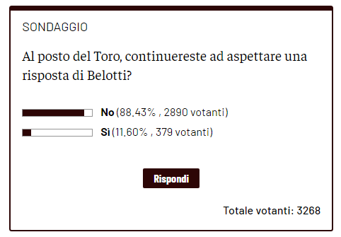 Ieri vi abbiamo chiesto se al posto del club granata continuereste ad aspettare una risposta da Belotti: i risultati del sondaggio