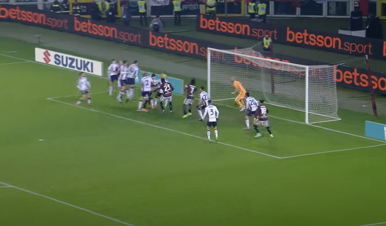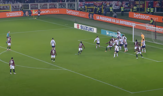 Il vantaggio granata arriva all'ultima palla del primo tempo. Calcio d'angolo dalla sinistra che viene battuto da Lazaro.