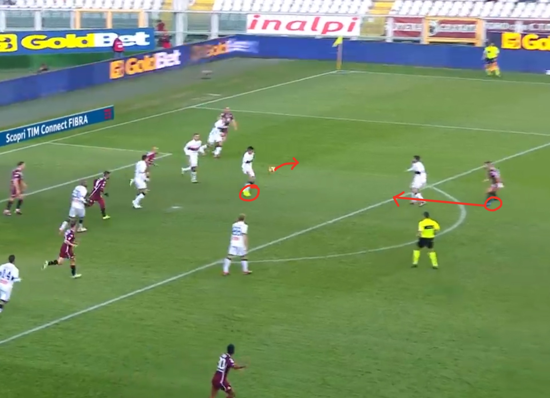 Il centrocampista venezuelano riesce a togliere la palla dal numero 17 rossoblù. A differenza di quest'ultimo Ansaldi, dal limite dell'area, non sbaglia il controllo del pallone e con una bellissima girata trafigge il portiere avversario. Al termine della gara l'argentino affermerà: "Mi scuso per l'esultanza con i miei ex tifosi, ma aver segnato dopo tre mesi di stop è stata una liberazione".