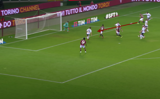 Il gol di Brekalo nasce da un palla recuperata da Vojvoda a centrocampo. Il kosovaro poi serve Lukic (immagine 1), che triangola con Praet largo sulla destra.