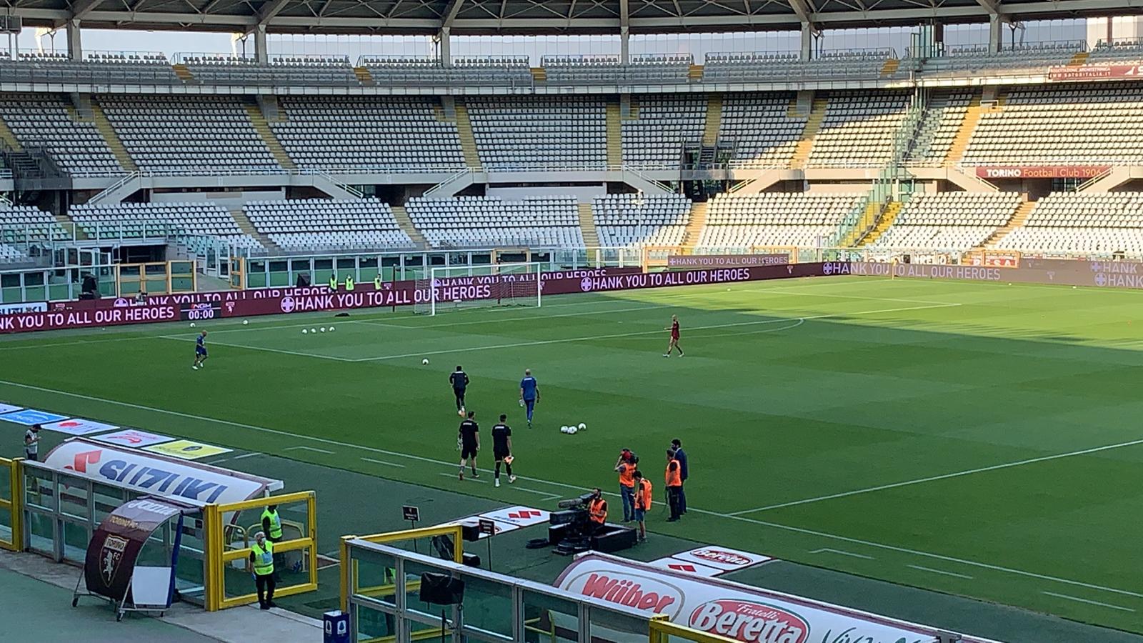 19.15 - Terminato il riscaldamento delle squadre. Nel finale del riscaldamento è arrivato a bordocampo anche Urbano Cairo per incoraggiare i giocatori.