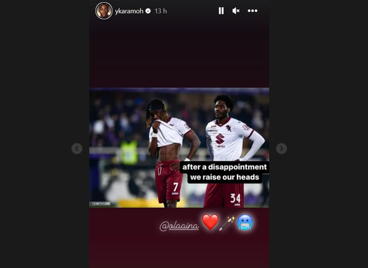 Nelle sue storie di Instagram Karamoh ha anche scritto: "Dopo una delusione alziamo la testa". Chiaro il riferimento alla partita di Firenze: dopo l'eliminazione in Coppa Italia, i granata si sono subito riscattati con la vittoria con l'Udinese, conquistando il settimo posto in classifica.