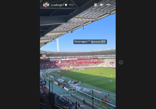 Non convocato a causa del problema muscolare al flessore, Nemanja Radonjic ieri era presente allo stadio Olimpico Grande Torino a sostenere la sua squadra: "Forza ragazzi" ha scritto il trequartista serbo sulle sue storie di Instagram.