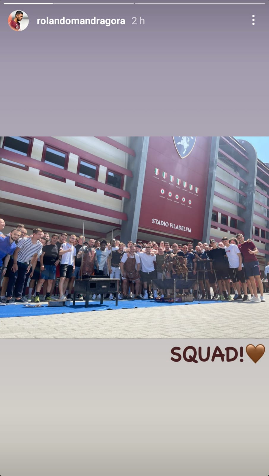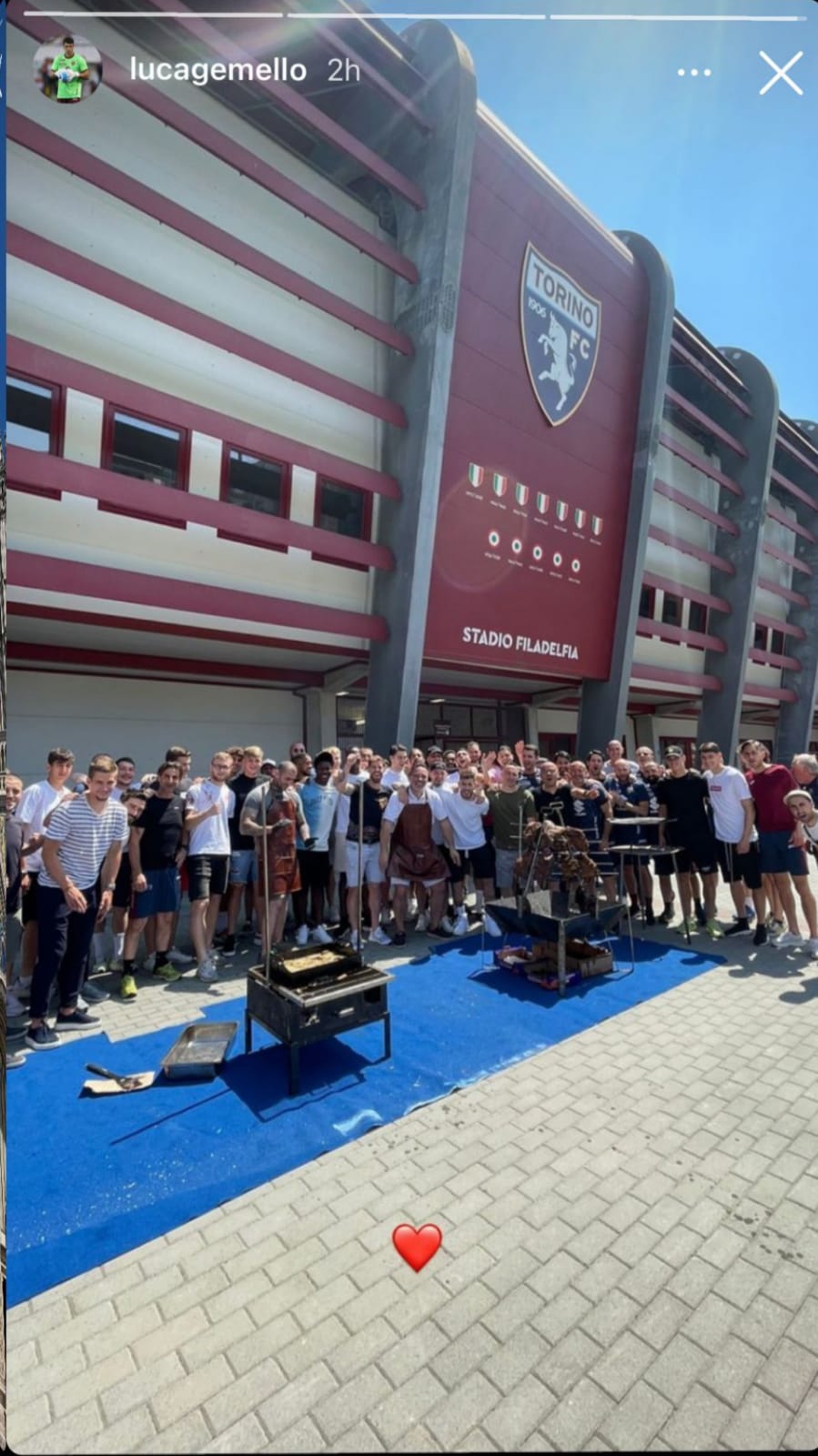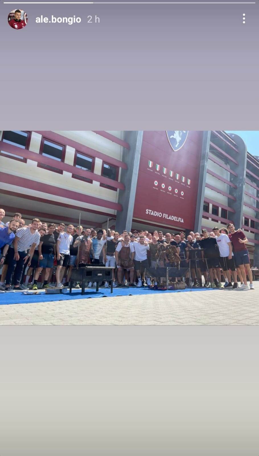 Dopo l'allenamento i granata si sono fermati allo stadio Filadelfia per una grigliata tutti insieme