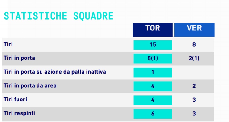 Statistiche / I numeri dell’ultima sfida che ha visto impegnati gli uomini di Marco Giampaolo all’Olimpico Grande Torino contro gli scaligeri