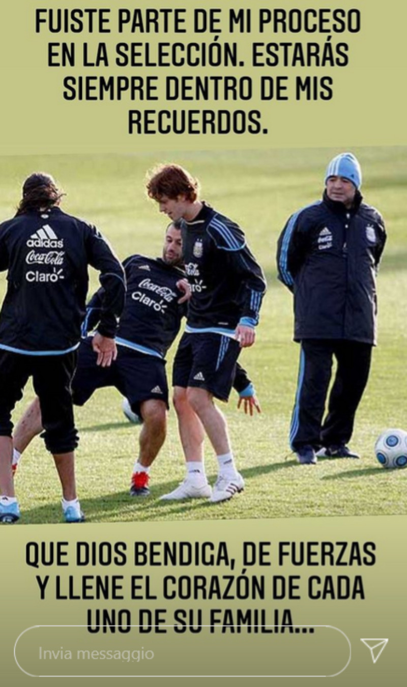 "Sei stato parte del mio percorso con la Nazionale. Sempre dentro i miei ricordi. Che Dio benedica e riempia di forza il cuore di ogni membro della sua famiglia". Ansaldi ricorda così Diego Maradona, pubblicando nelle proprie storie una foto ritraente l'esterno granata in gruppo con l'Albiceleste sotto gli occhi del Diez, all'epoca in cui - tra il 2008 e il 2010 - El Pibe de Oro fu ct della Nazionale sudamericana.