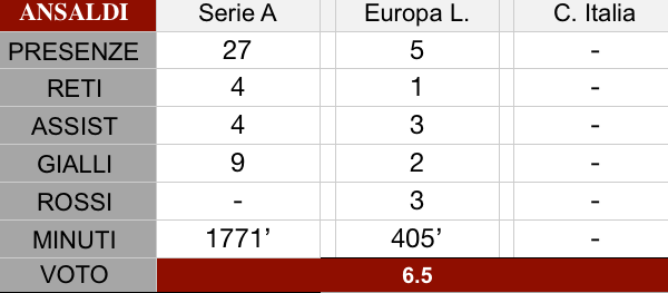 Tanta qualità ma un fisico di cristallo. Cristian Ansaldi tra i giocatori del Torino è tra quelli che ha espresso maggior qualità in questa travagliata stagione 2019/2020. L'esterno con le sue galoppate sulla fascia, i suoi dribbling e i suoi cross ha spesso creato grattacapi agli avversari dei piemontesi. Per larghi tratti del girone di andata, Ansaldi è stato persino la più efficace fonte di gioco del Torino, per il suo ottimo rendimento ma anche per l'assenza di centrocampisti che avessero le sue intuizioni e la sua capacità di creare pericoli. Il problema principale è stata la tenuta fisica, per diversi infortuni che gli hanno impedito di avere continuità. E' stato assente dal 29 agosto al 22 settembre per un infortunio al bicipite femorale, dal 12 gennaio al 2 febbraio per uno stiramento ad un polpaccio e a giugno ha avuto una ricaduta allo stesso polpaccio. Troppi guai fisici che non gli hanno permesso di mantenere lo stesso livello prestazionale, nonostante il suo valore e la sua tecnica siano ben conosciuti in casa Toro ed abbiano rappresentato un valore aggiunto in più occasioni. Per rendere al massimo, Ansaldi ha bisogno di stare bene fisicamente e questo si è avvertito anche nel post-Covid. Se entrava a partita in corso riusciva a dare il suo contributo ma la tenuta fisica non era quella più idonea e verso il finale il calo è stato più accentuato. Per il futuro lui si augura di restare all'ombra della Mole (leggi qui), ma è in scadenza di contratto e il Torino dovrà fare le proprie valutazioni insieme al tecnico che succederà a Moreno Longo.