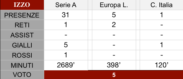 La fase difensiva è stato forse il problema principale del Torino 2019-2020 e sul banco degli imputati c'è Armando Izzo. Il difensore ex Genoa non si è confermato rispetto alla stagione 2018-2019, quando era diventato un pilastro nella squadra di Walter Mazzarri tanto da meritarsi un rinnovo di contratto sino al 2024. Il suo rendimento è l'emblema della stagione granata e della metamorfosi in negativo di una difesa che è passata dal subire 37 gol a subirne 68 nel giro di un anno. E dire che l'inizio era stato di tutt'altro avviso: due reti nei preliminari d'Europa League, un gol nella vittoria a Bergamo contro l'Atalanta. Poi il calo, con diversi, troppi errori che sono costati caro al club. Come nella gara contro la Sampdoria di febbraio, quando è stato espulso dopo aver causato un rigore e precedentemente il Torino aveva subito un gol a causa di una sua mancanza. La società granata credeva di avere di avere delle sicurezze avendo scelto in estate di tenere tutti i giocatori blindando alcuni di loro con rinnovi di contratto, ma così non è stato perché elementi su cui si puntava come Izzo sono calati vistosamente nella stagione da poco conclusa rispetto a quella nella quale si era centrato il settimo posto.