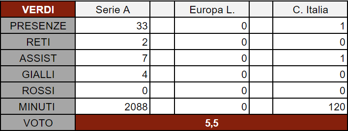 Non è sufficiente: la stagione di Simone Verdi è stata per larghi tratti negativa, con l'attaccante che in campo spesso si ritrovava a non saper cosa fare, senza avere un ruolo ben definito, svariando sulla trequarti senza risultati eccelsi. Troppo poco per il giocatore che era arrivato alla corte di Mazzarri come l'uomo della qualità, il giocatore che avrebbe dovuto congiungere il centrocampo e l'attacco con la tecnica nei suoi piedi. Fino all'interruzione del campionato, la stagione del numero 24 è stata una delusione su tutta la linea. Solo un gol e tre assist, un bottino esageratamente basso per le aspettative. Proprio le aspettative sono state forse ciò che hanno frenato Verdi per molti mesi. L'etichetta dell'uomo da 25 milioni, del giocatore più pagato nella storia del Torino, ha pesato troppo sulle sue spalle e il rendimento ne ha evidentemente risentito. Nel post-Covid, va detto, Verdi con Longo ha trovato più costanza e tranquillità. Le sue prestazioni hanno cominciato ad essere migliori, sfoderando talvolta anche qualche pezzo pregiato: totale, quattro assist ed un gol (più l'autogol di Mateju del Brescia propiziato) nelle ultime 11 partite nelle quali ha sempre giocato. Ancora troppo poco, ma quantomeno un bagliore di una speranza, in vista anche della prossima importante stagione.