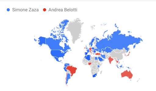 Il granata più cercato su Google nel 2018 è il neo acquisto Simone Zaza. Per lui c'è da registrare un picco di ricerche negli ultimi giorni di calciomercato, quando il suo destino era incerto. L'ex Sassuolo e Atalanta, sembrava ad un passo dall'approdo alla Sampdoria ma nelle ore finali di mercato il Toro ha rilanciato ed è riuscito ad assicurarsi il giocatore. Interessante constatare che, secondo i dati Google, Zaza è il giocatore del Toro più ricercato al mondo, in particolare in Spagna dove ha giocato sino al suo trasferimento all'ombra della Mole. Se si prendono in considerazioni le ricerche in Italia, Andrea Belotti supera il suo compagno di reparto - come evidenzia l'immagine sottostante - e può detenere il primato di granata più cliccato in Italia nel 2018.