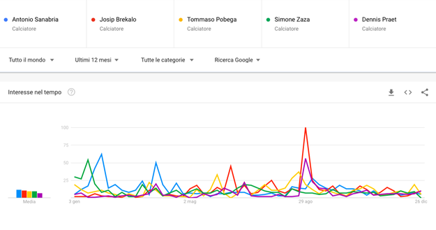 Dopo i due 'nazionali', seguono nella classifica dei granata più cliccati: Antonio Sanabria, Josip Brekalo, Tommaso Pobega, Simone Zaza, e Dennis Praet. Tonny ha trovato i suoi picchi di clic prima quando si è trasferito al Torino e poi quando ha messo a segno la doppietta al derby della Mole che poi è finito in parità, in panchina c'era Davide Nicola. Brekalo ha avuto invece il suo punto alto di clic quando si è trasferito in prestito al Toro nella sessione estiva del mercato, un dato così alto da non paragonare a quelli degli altri giocatori, probabilmente il croato classe 1998 ha attirato l'interesse di molti fanta-allenatori in cerca di giocatori che possano dare bonus, oltre alla curiosità dei tifosi granata di avere più notizie sul nuovo acquisto.