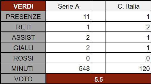 PARTITA FLOP - La partita flop di Verdi è stata quella contro il Cagliari, anche se la scelta è stata ardua. Nella gara contro gli isolani, entrato a 11 minuti dalla fine, serviva che piazzasse il colpo di qualità per impedire una sconfitta casalinga pesante. Un'occasione gigantesca è capitata sul suo sinistro, ma non lo ha buttato in rete. Verdi era stato acquistato per quei colpi, quei tiri a giro con entrambi i piedi. L'ennesima chance di prendersi la ribalta e le copertine, buttata alle ortiche.