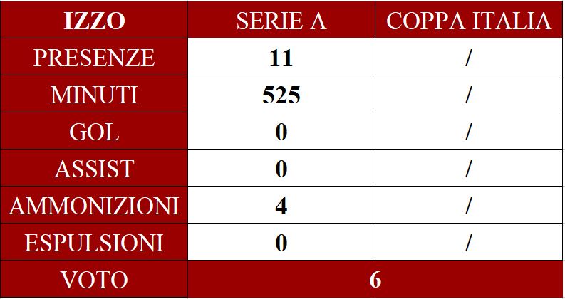VOTO - In conclusione il voto più giusto da assegnare alla stagione di Armando Izzo è 6. Il numero 5 granata merita la sufficienza per ciò che ha dimostrato sul campo se si escludono le prime due gare dell'anno dove non fu all'altezza. Il lungo periodo lontano dalle rotazioni di Juric aveva fatto pensare anche ad un suo addio a gennaio ma il difensore napoletano ha rifiutato tutte proposte (Salernitana e Cagliari) e lottando si è ripreso un posto importante in questo Torino.