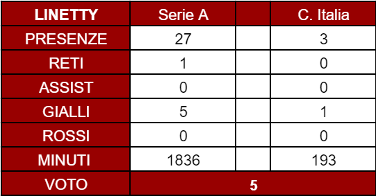 VOTO - Non può che essere decisamente insufficiente il suo voto finale della stagione 2020/2021: un 5 complessivo, che racchiude la prima parte di campionato sufficiente e la seconda gravemente segnata da prestazioni negative.