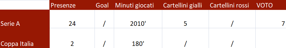 PARTITA FLOP - Unica e tangibile nota stonata della stagione è stata la sua prestazione in Torino-Napoli 1-3. All'Olimpico Grande Torino si vide una brutta prestazione di squadra, dalla quale non uscì indenne nemmeno il veterano della difesa granata. L'errore sul rinvio su Nkoulou, divenuto assist per Insigne, fece segnare il primo goal ai partenopei; in quello stesso match Moretti non riuscì a chiudere su Callejon in occasione del terzo gol napoletano. Cose che capitano, considerando che era la 5' di andata e che il resto delle prestazioni sono state solide.