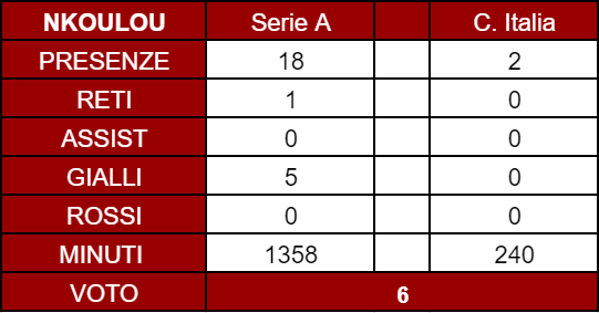 VOTO - Nel complesso, la stagione di Nkoulou è stata un vero e proprio connubio di luci ed ombre. Un'ultima danza in granata che non gli rende giustizia, in particolare per quanto visto negli anni "d'oro" di Mazzarri. In ogni caso, merita un 6 in pagella, perché alcune prestazioni decisive ci sono state e non possono essere ignorate.