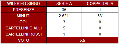 VOTO - In definitiva, il voto assegnato a Singo è 6,5. Rientra tra i giocatori più utilizzati dal tecnico granata e, seppur a fasi alterne - considerando soprattutto la pubalgia a fine campionato - , ha condotto una buona annata. L'esterno ivoriano man mano dà segni di crescita, ma senz'altro deve e può ancora migliorare.